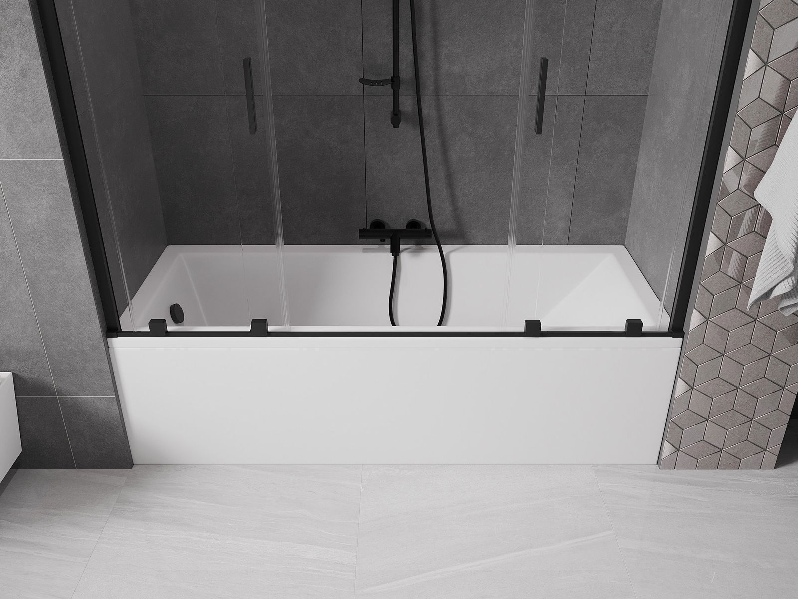 Mexen Velar Duo kádparaván 2-részes toló 180 x 150 cm, átlátszó, fekete - 896-180-000-02-70