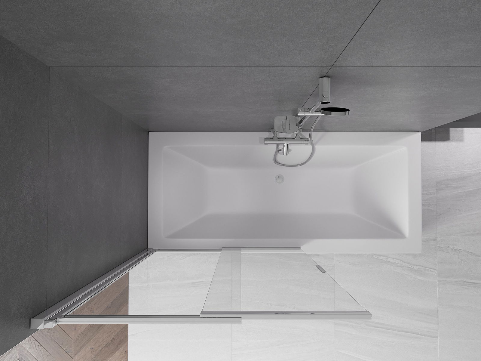 Az univerzális rögzítő rendszer használatával a képernyő jobbra vagy balra szerelhető, az Ön igényeitől függően. Ilyen módon könnyen megtervezheti a fürdőszobához szabott zuhanyt.