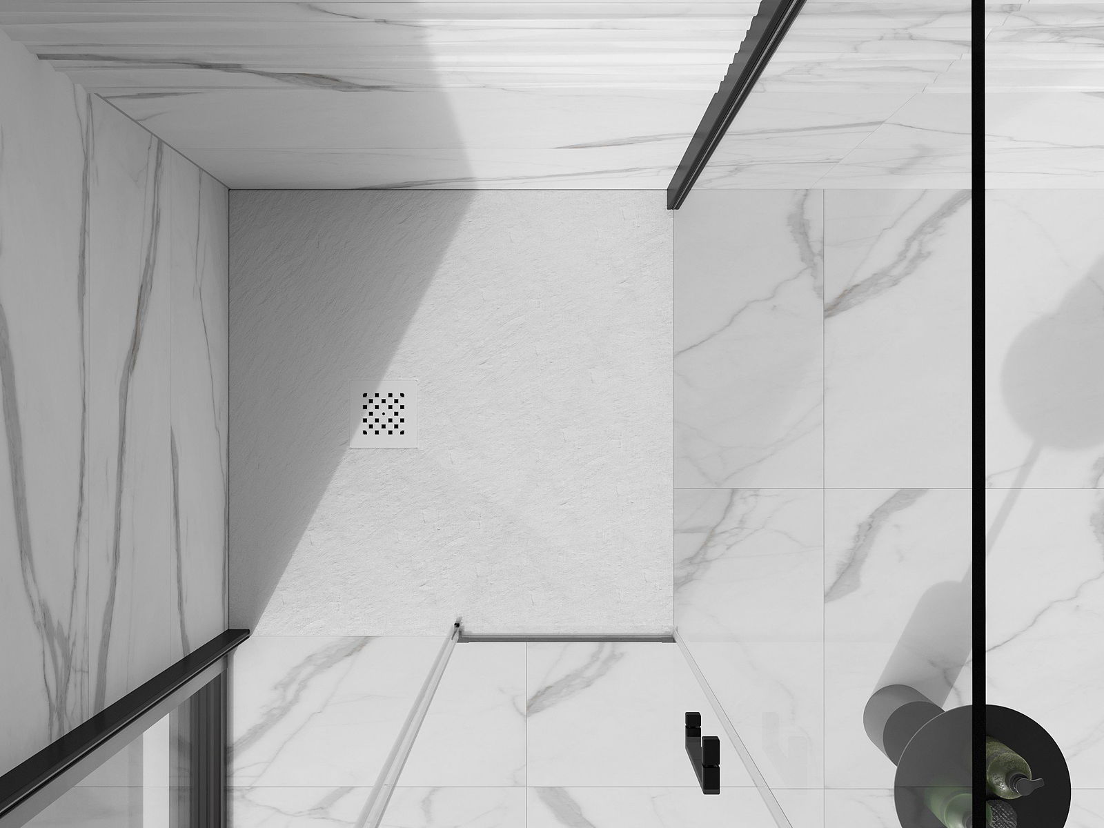 Mexen Stone+ kompozit négyzet alakú zuhanytálca 70 x 70 cm, fehér, fehér burkolattal - 44107070-W