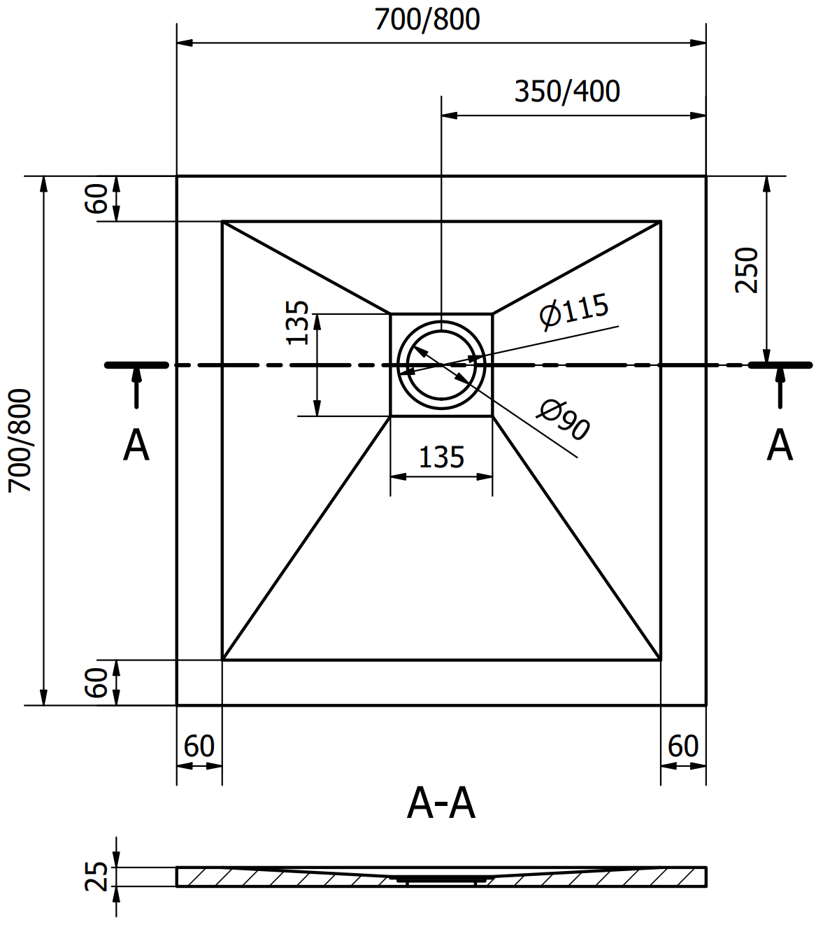 A zuhany tálcát úgy tervezték, hogy a víz szabadon folyhasson a csatornába. Gyors és hatékony vízelvezetést biztosít az evező medence felületéről, megakadályozva a pocsolya kialakulását és a fürdőszobát elárasztva.