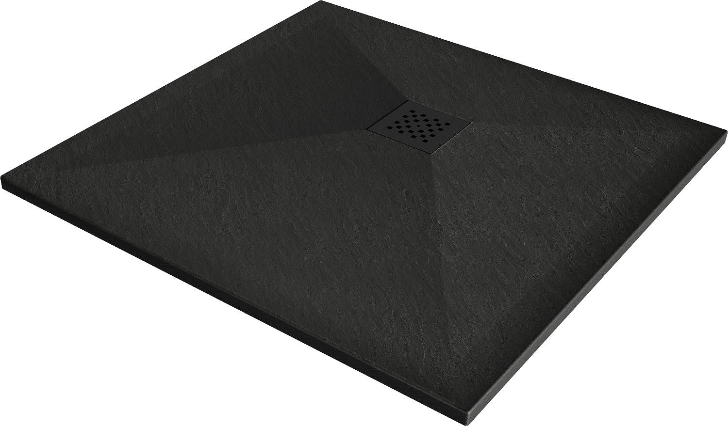 Mexen Stone+ kompozit zuhanytálca négyzet alakú 90 x 90 cm, fekete, fekete takaró - 44709090-B