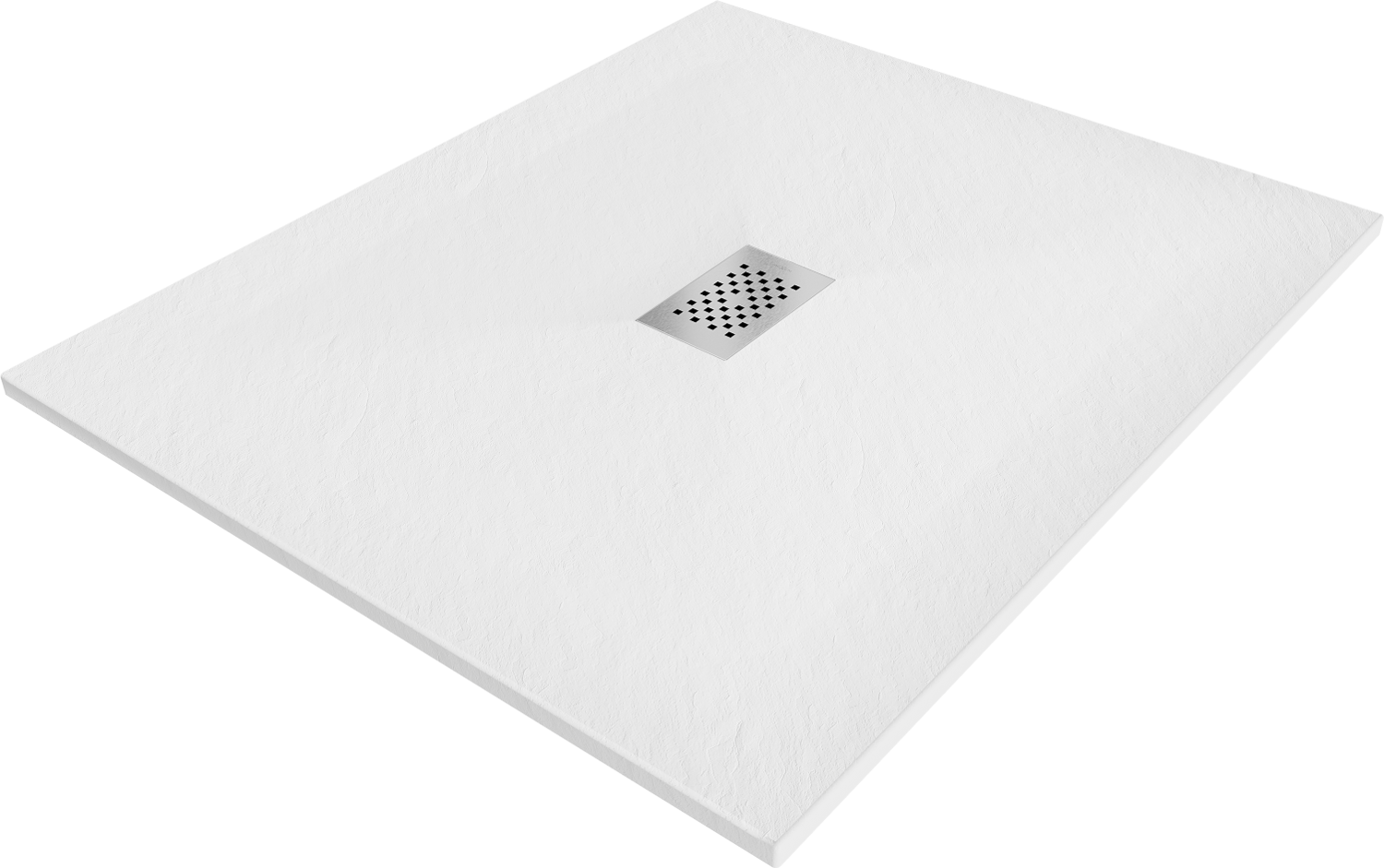 A zuhany tálca felülete egy kőhez hasonlít a szerkezetével. Ez a természetes megjelenés egyedülálló kombinációja a modern belső elrendezéssel. Hozzáteszi a karaktert, hangsúlyozza a fürdőszoba dekorációjának esztétikáját és eleganciáját, és a formájával lenyűgöz.