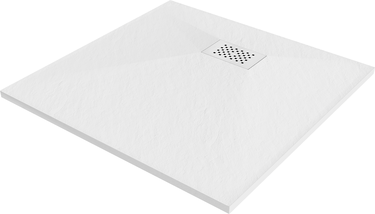 A zuhany tálca felülete egy kőhez hasonlít a szerkezetével. Ez a természetes megjelenés egyedülálló kombinációja a modern belső elrendezéssel. Hozzáteszi a karaktert, hangsúlyozza a fürdőszoba dekorációjának esztétikáját és eleganciáját, és a formájával lenyűgöz.