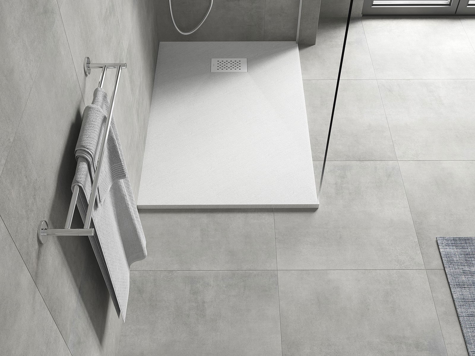 A zuhany tálcának alacsony küszöbértéke van, ami megkönnyíti a belépést és a zuhany elhagyását. Egyedülálló és időtlen kivitelben adja a szobát, így a fürdőszobát kényelmes és esztétikai helyévé teszi a napi relaxációhoz.