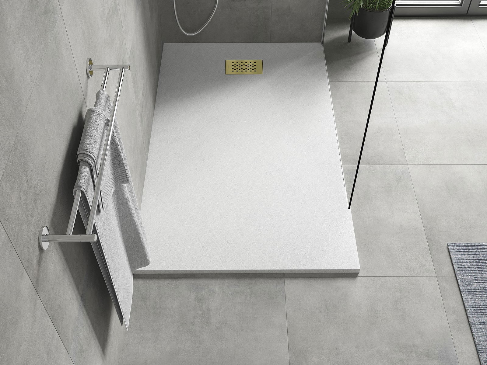 Mexen Hugo téglalap alakú SMC zuhanytálca 140 x 80 cm, fehér, arany takarólap - 42108014-G