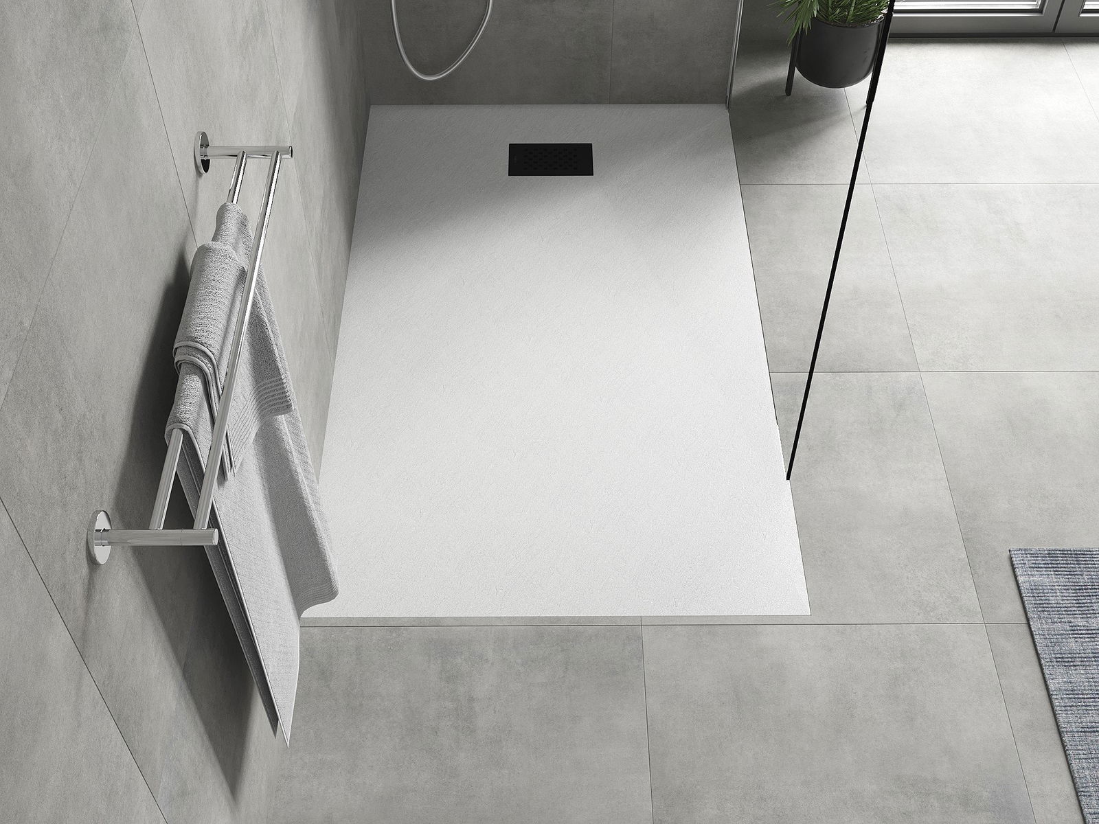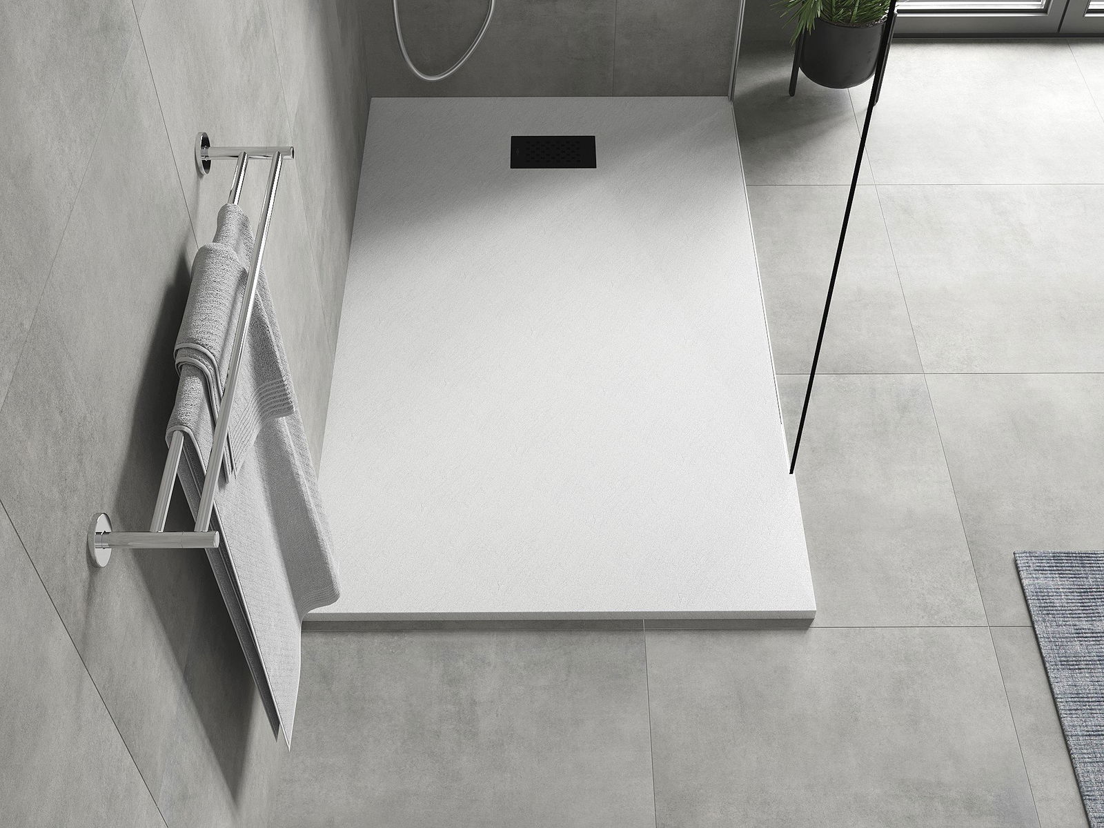 A zuhany tálcának alacsony küszöbértéke van, ami megkönnyíti a belépést és a zuhany elhagyását. Egyedülálló és időtlen kivitelben adja a szobát, így a fürdőszobát kényelmes és esztétikai helyévé teszi a napi relaxációhoz.