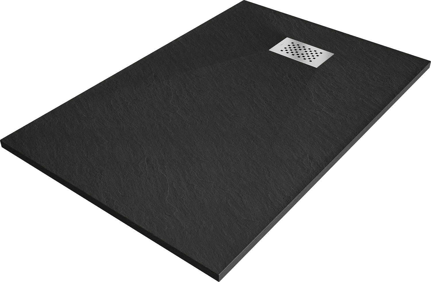 Mexen Hugo téglalap alakú SMC zuhanytálca 110 x 70 cm, fekete, inox fedéllappal - 42707011-X