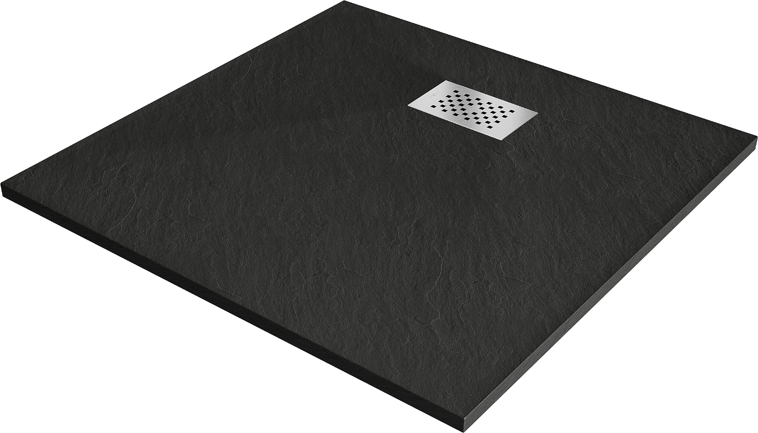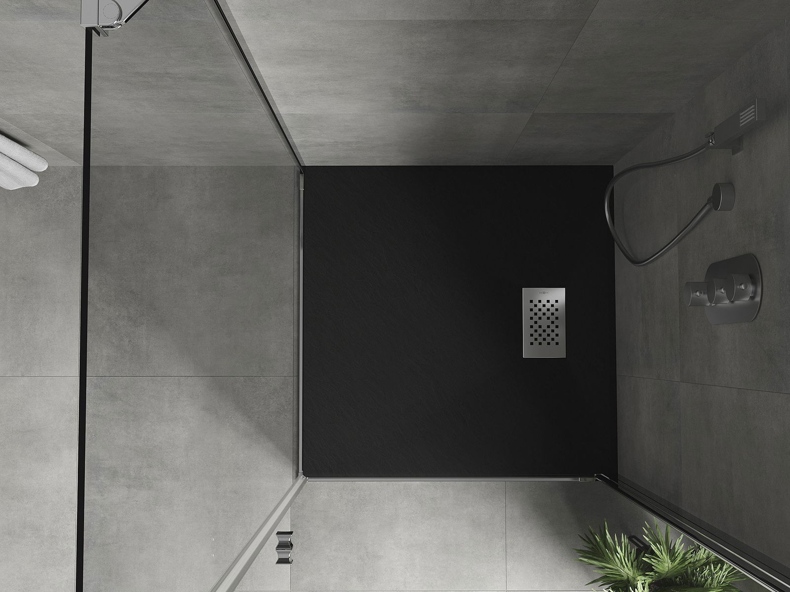Mexen Hugo SMC négyzet alakú zuhanytálca 80 x 80 cm, fekete, inox takaró - 42708080-X