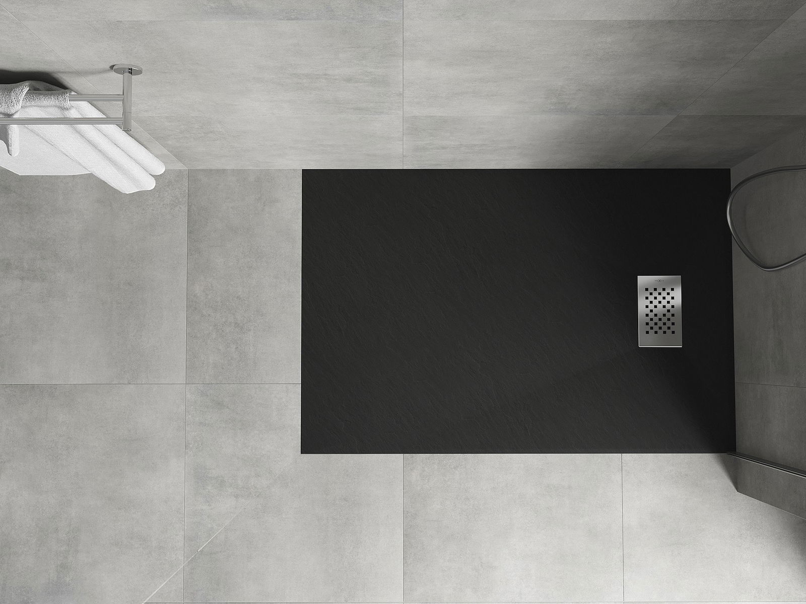 A zuhany tálca felülete egy kőhez hasonlít a szerkezetével. Ez a természetes megjelenés egyedülálló kombinációja a modern belső elrendezéssel. Hozzáteszi a karaktert, hangsúlyozza a fürdőszoba dekorációjának esztétikáját és eleganciáját, és a formájával lenyűgöz.