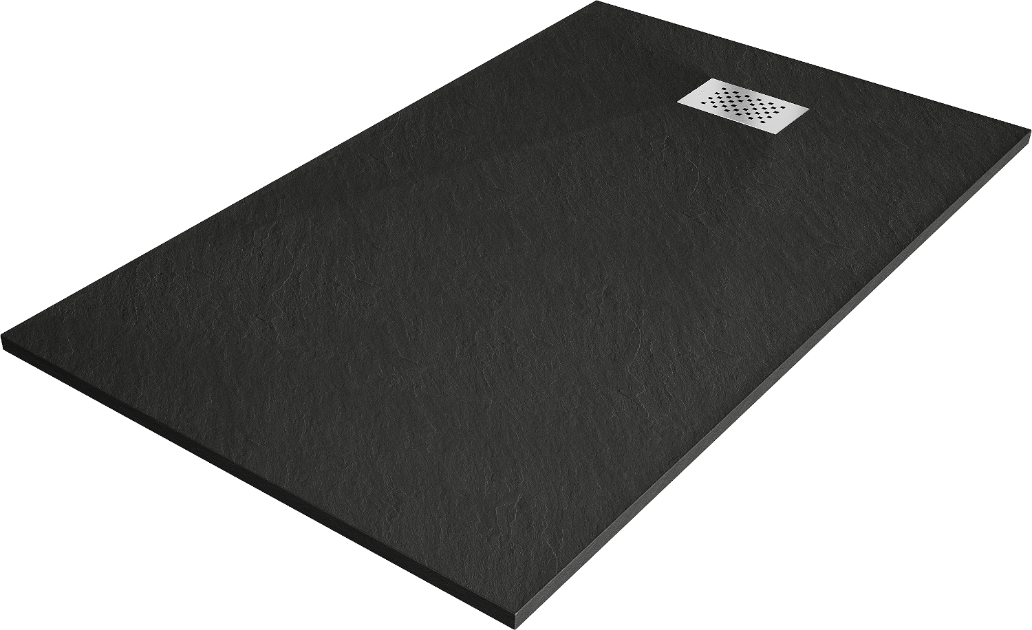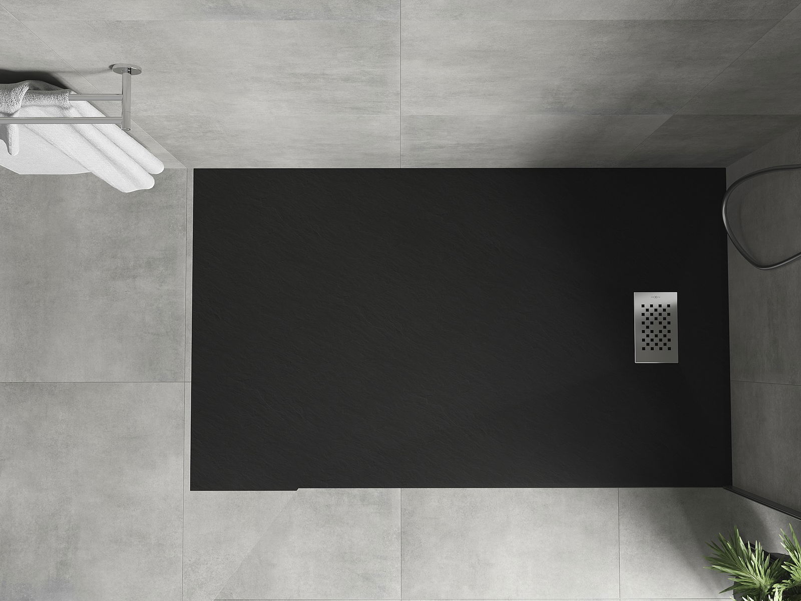 Mexen Hugo téglalap alakú SMC zuhanytálca 150 x 80 cm, fekete, inox fedél - 42708015-X