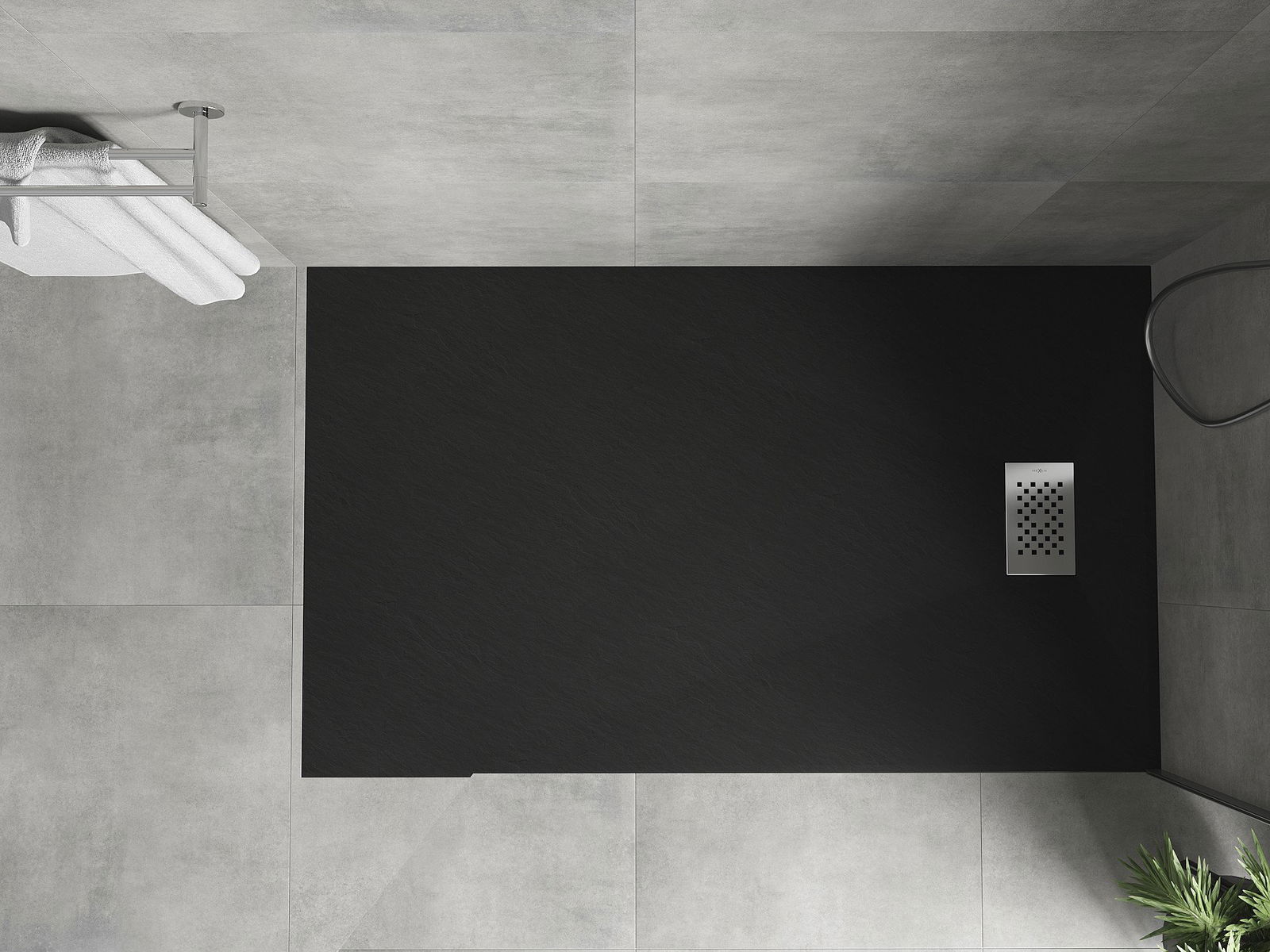 Mexen Hugo téglalap alakú SMC zuhanytálca 150 x 90 cm, fekete, inox takaró - 42709015-X