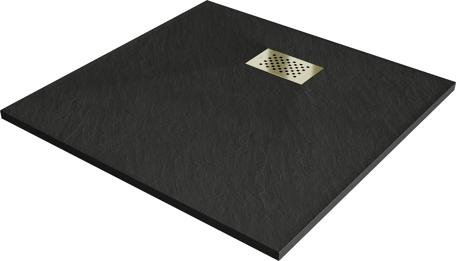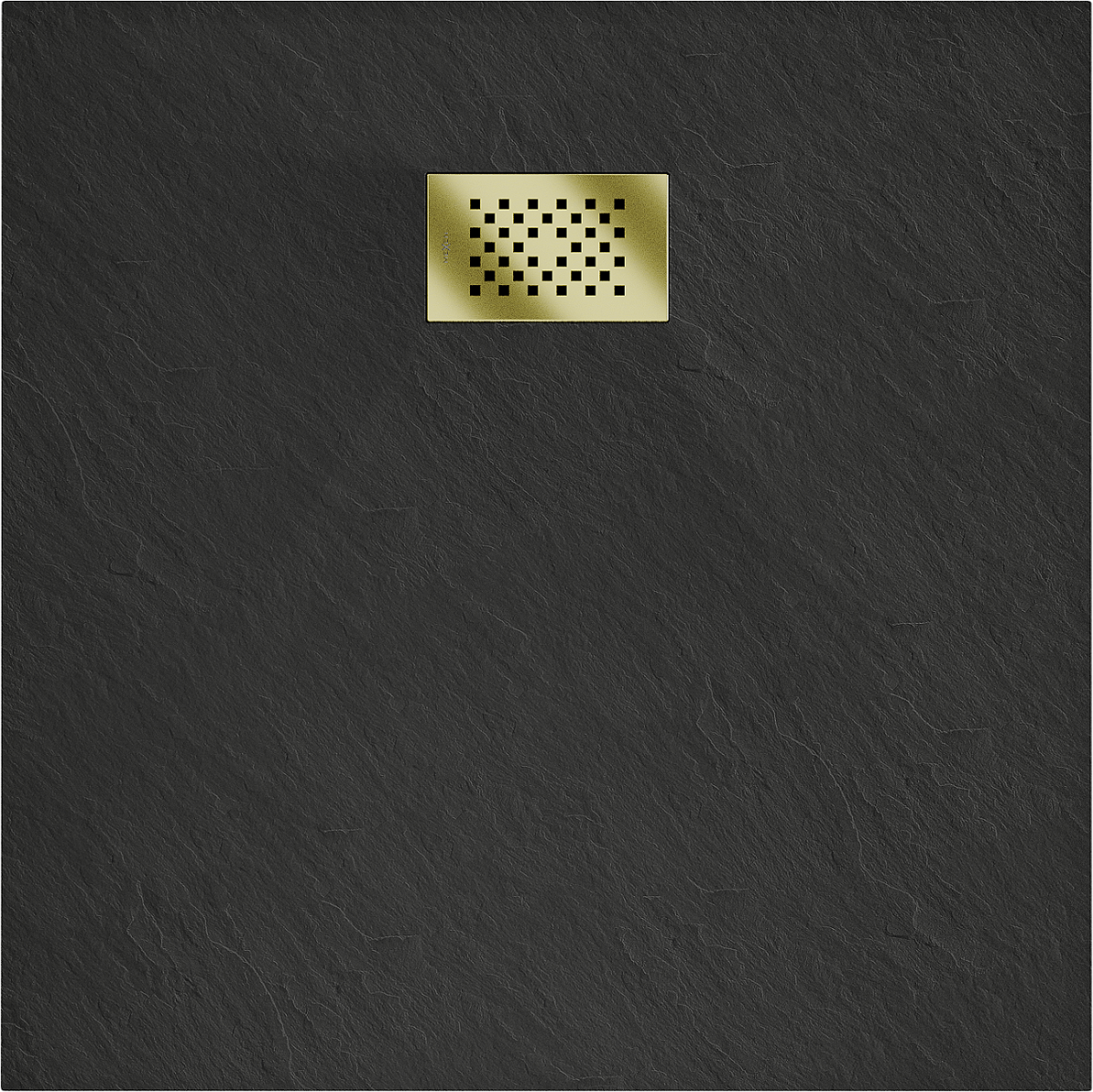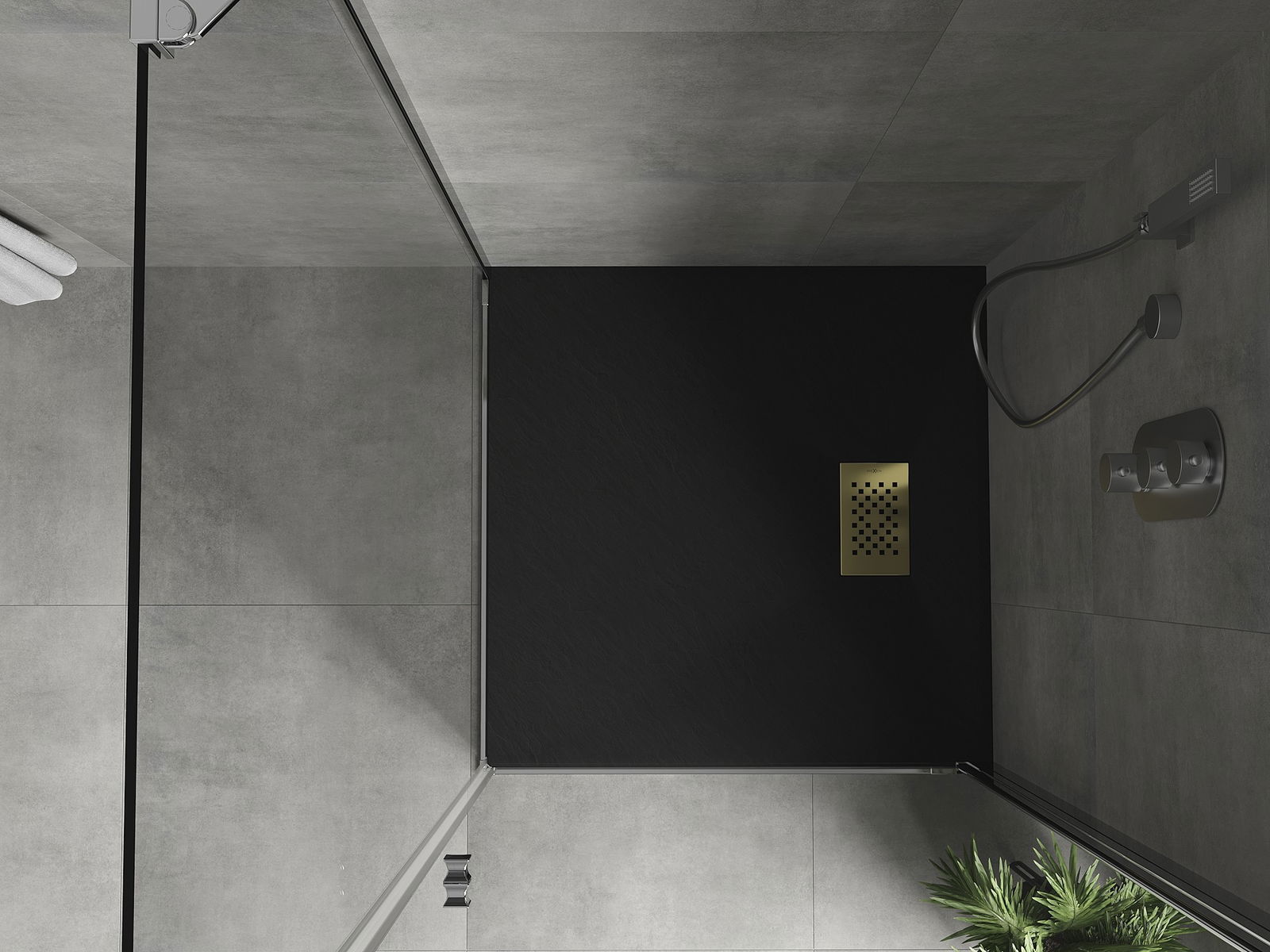 Mexen Hugo SMC négyzet alakú zuhanytálca, 70 x 70 cm, fekete, arany burkolat - 42707070-G