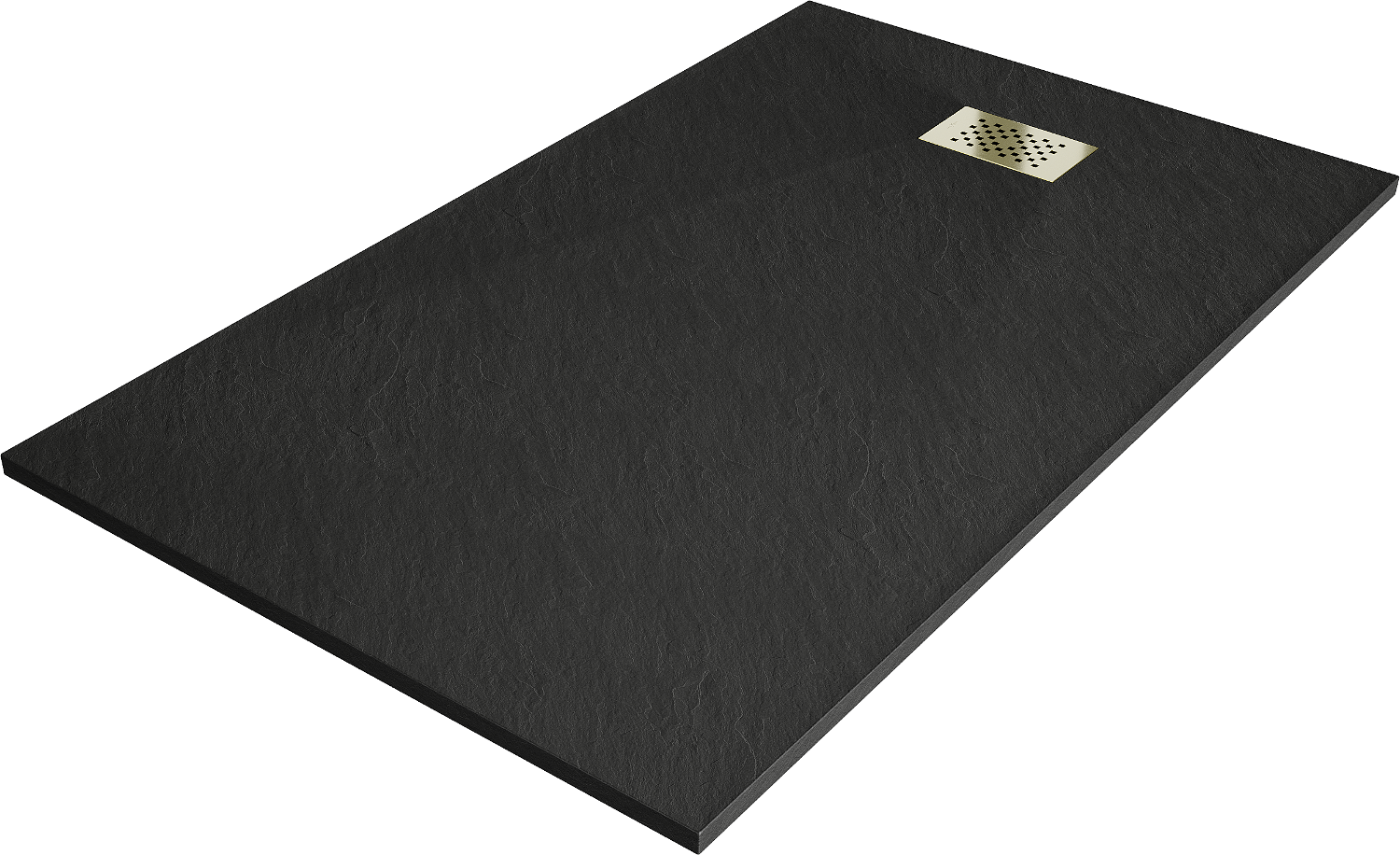 Mexen Hugo téglalap alakú SMC zuhanytálca 150 x 80 cm, fekete, arany burkolat - 42708015-G