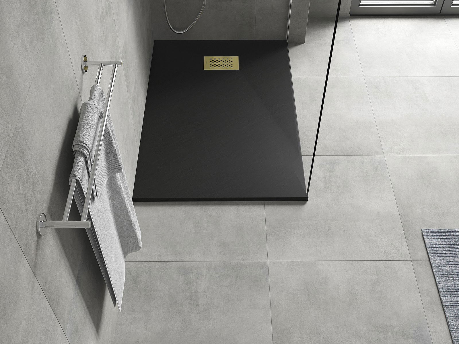 Mexen Hugo téglalap alakú SMC zuhanytálca 100 x 90 cm, fekete, arany takaró - 42709010-G