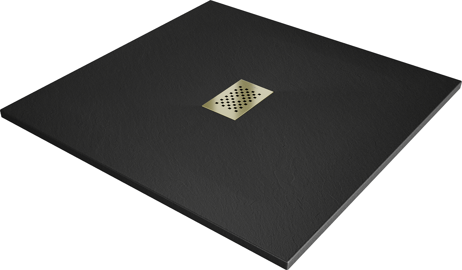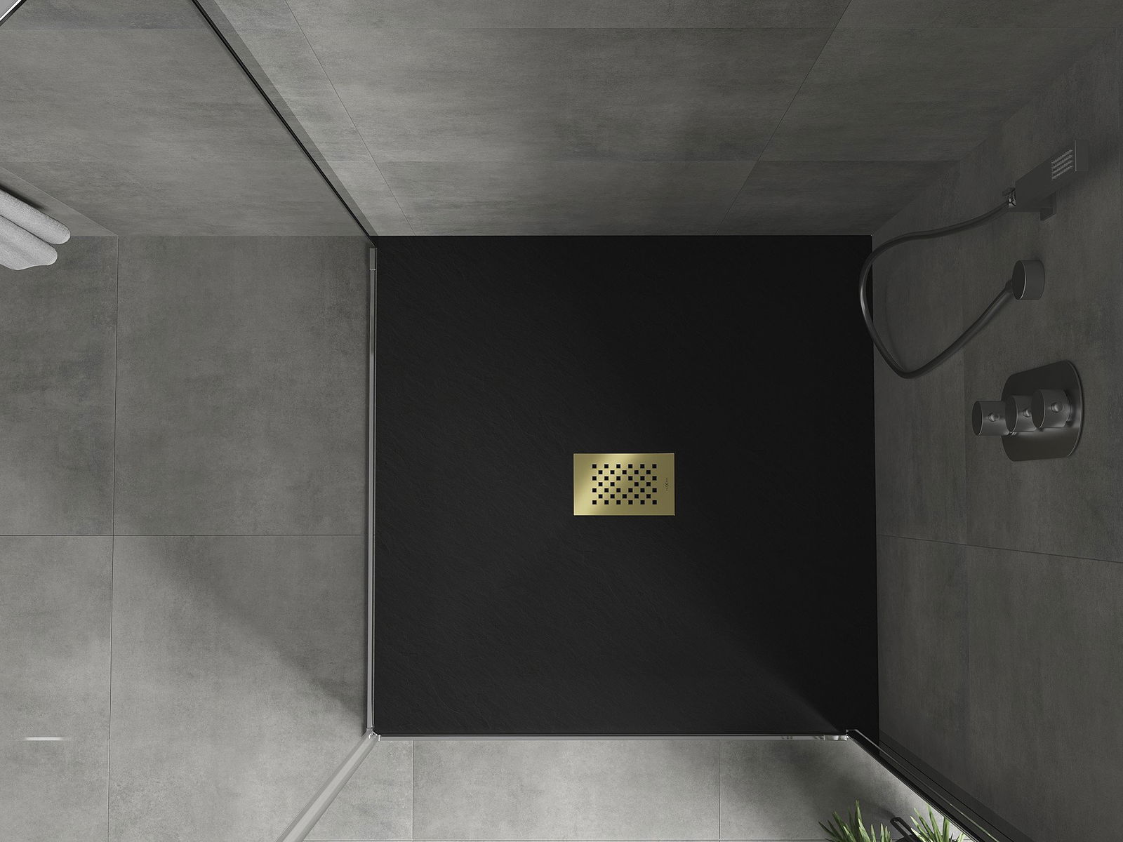 Mexen Hugo négyzet alakú SMC zuhanytálca 100 x 100 cm, fekete, arany fedéllel - 42701010-G