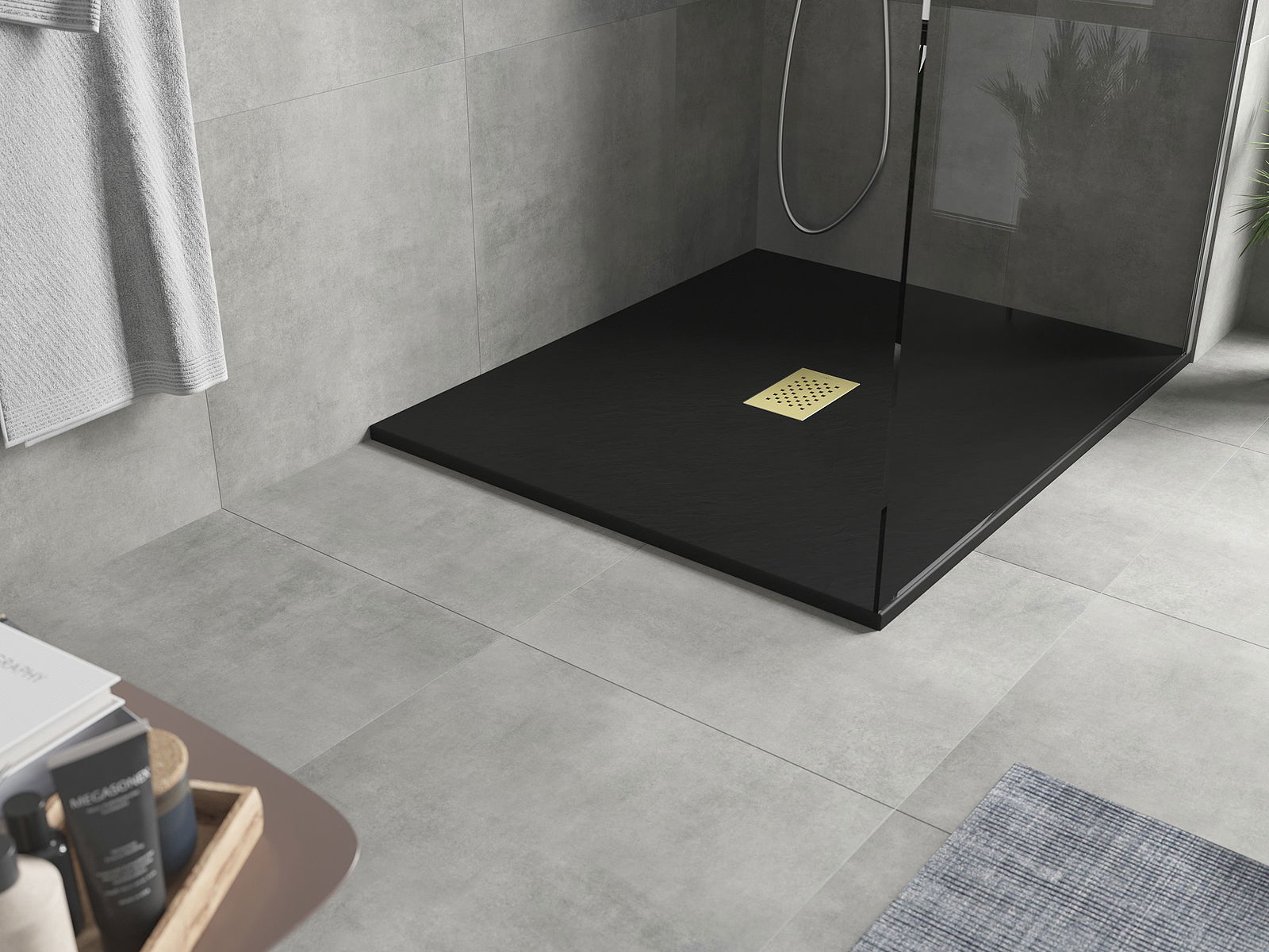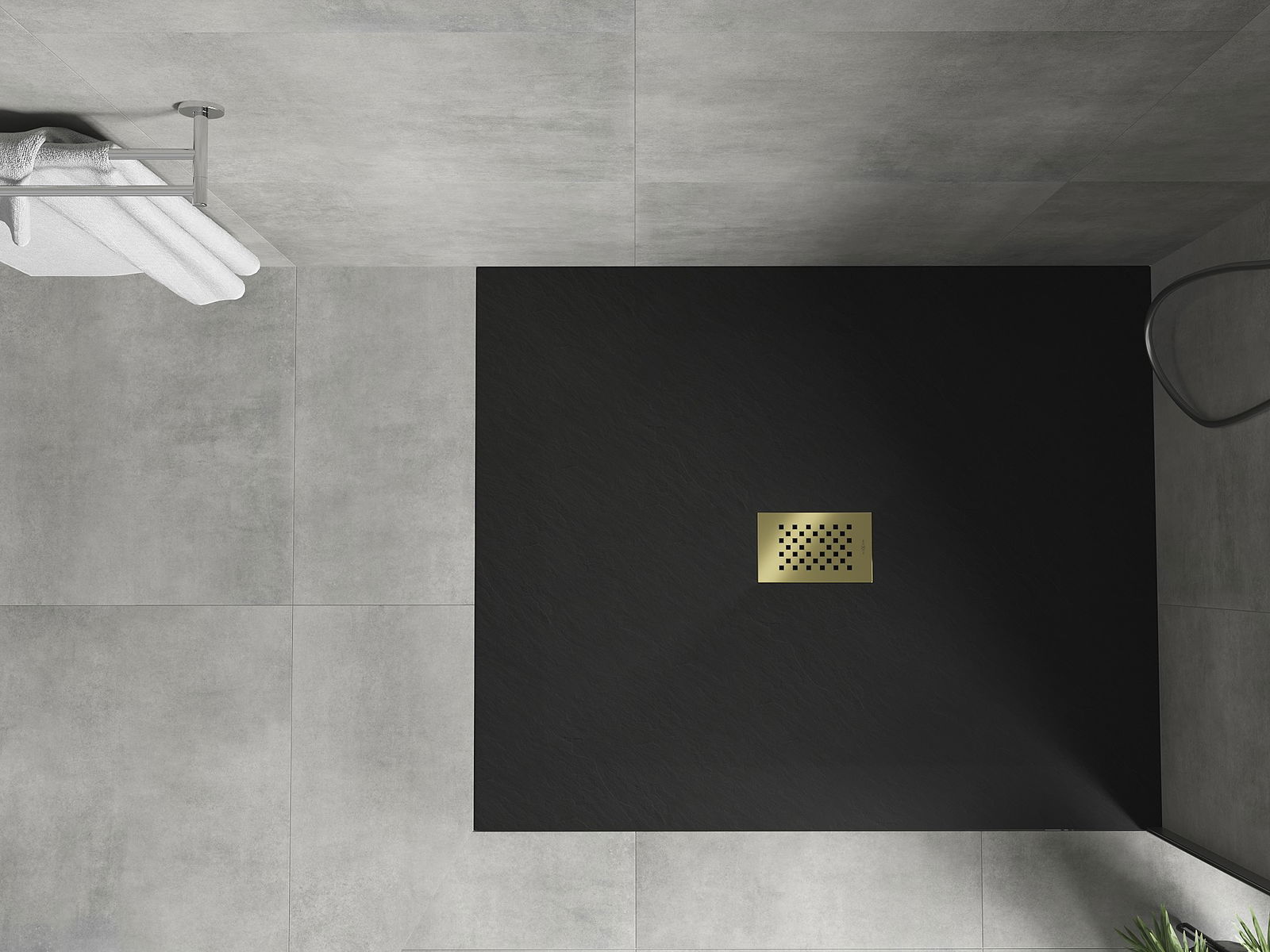 Mexen Hugo téglalap alakú SMC zuhanytálca 130 x 100 cm, fekete, arany burkolat - 42701013-G