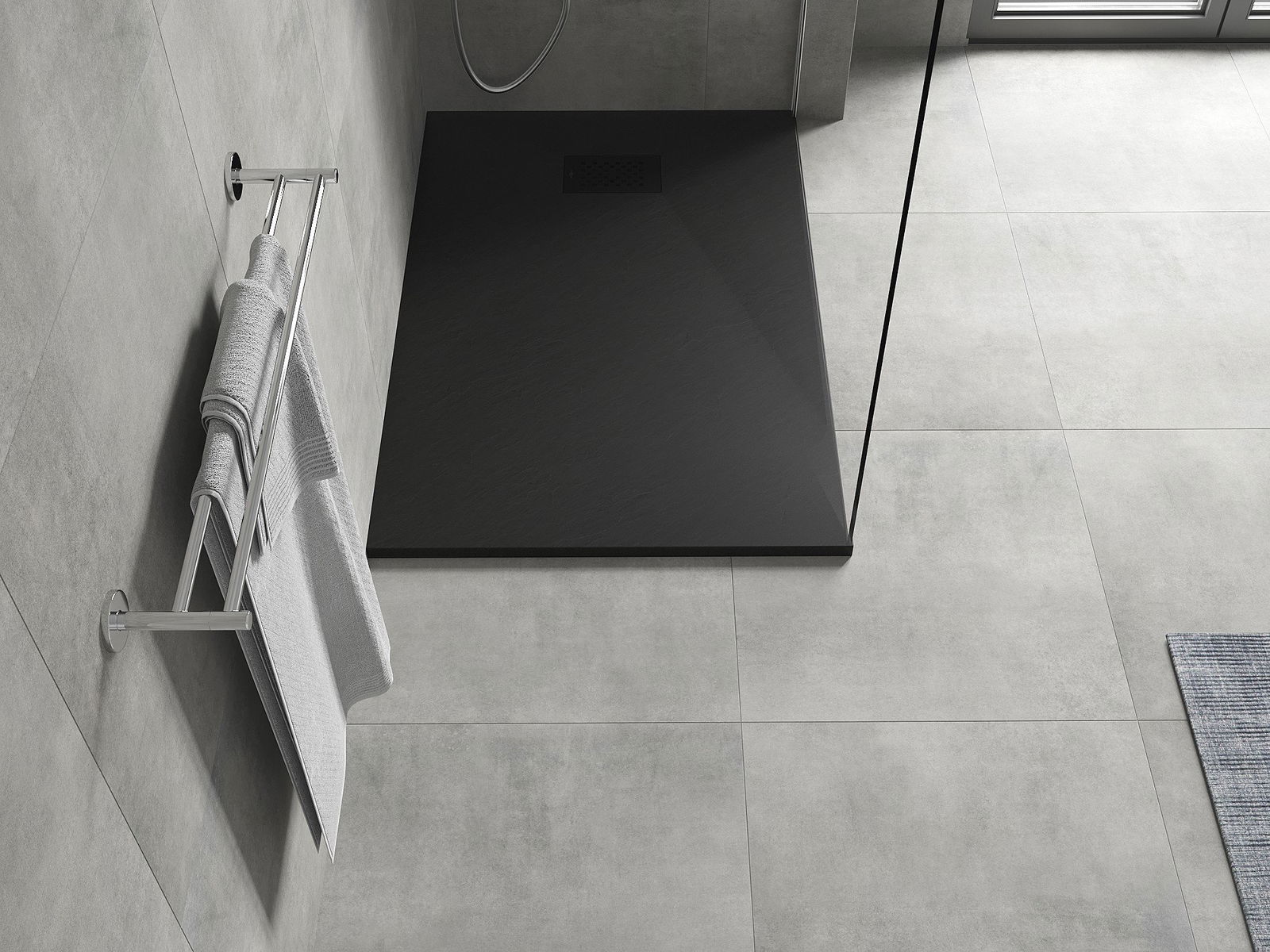 A zuhany tálcának alacsony küszöbértéke van, ami megkönnyíti a belépést és a zuhany elhagyását. Egyedülálló és időtlen kivitelben adja a szobát, így a fürdőszobát kényelmes és esztétikai helyévé teszi a napi relaxációhoz.