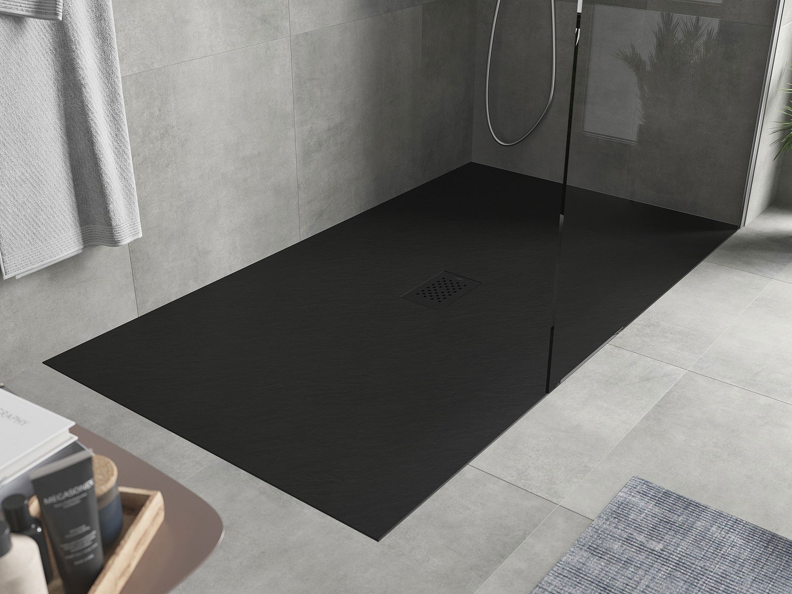 Mexen Hugo téglalap alakú SMC zuhanytálca 150 x 100 cm, fekete, fekete takaró - 42701015-B