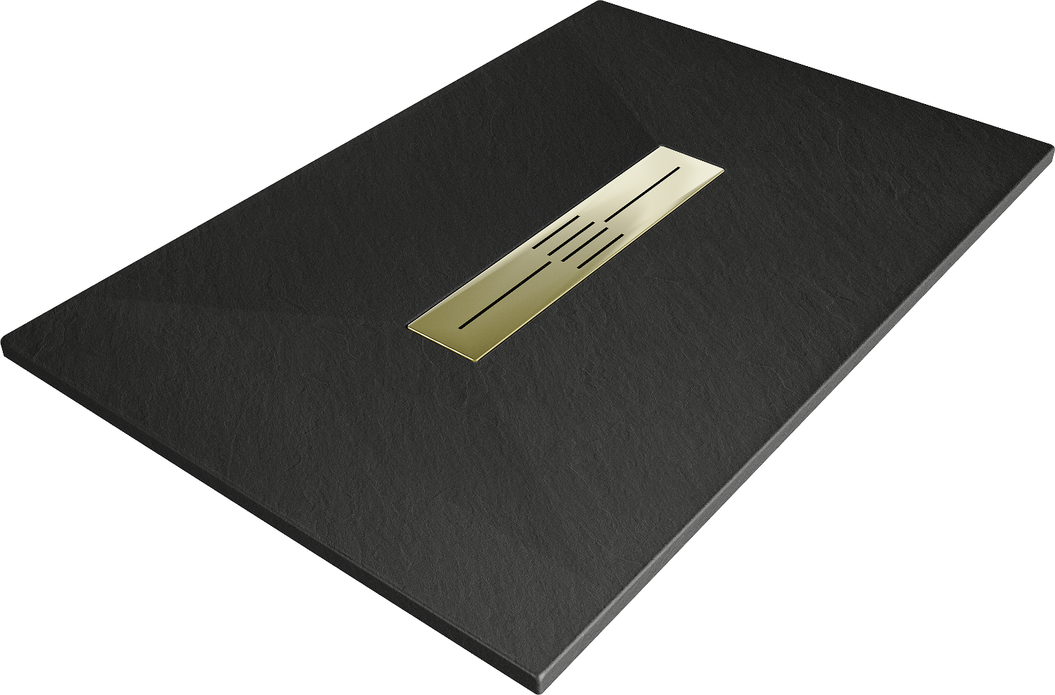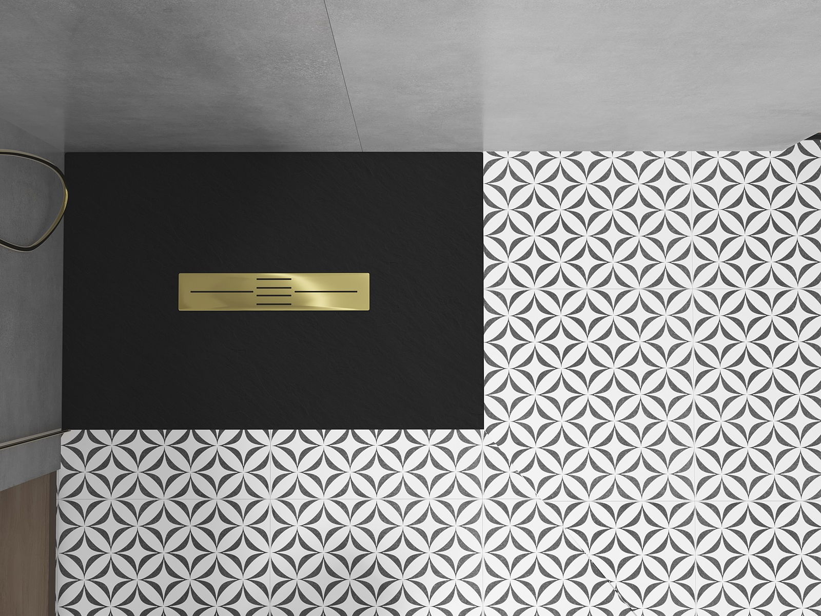 Mexen Toro téglalap alakú SMC zuhanytálca 140 x 70 cm, fekete, arany fedőrács - 43707014-G