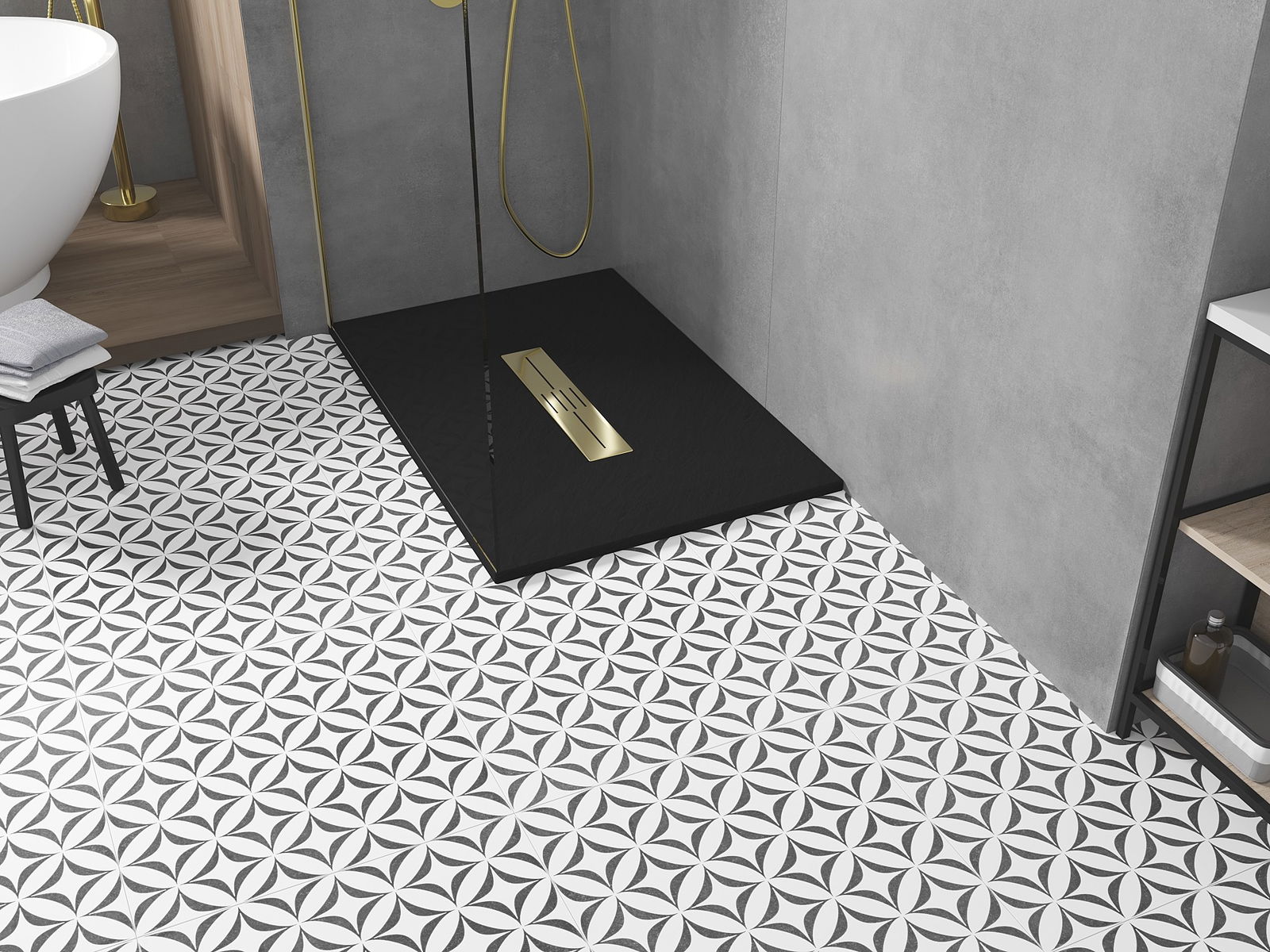 A zuhanytálcának alacsony pereme van, ami megkönnyíti a belépést és a kilépést a zuhanyból. Különleges és időtlen befejezést kölcsönöz a helyiségnek, komfortossá és esztétikussá téve a fürdőszobát a mindennapi relaxációhoz.