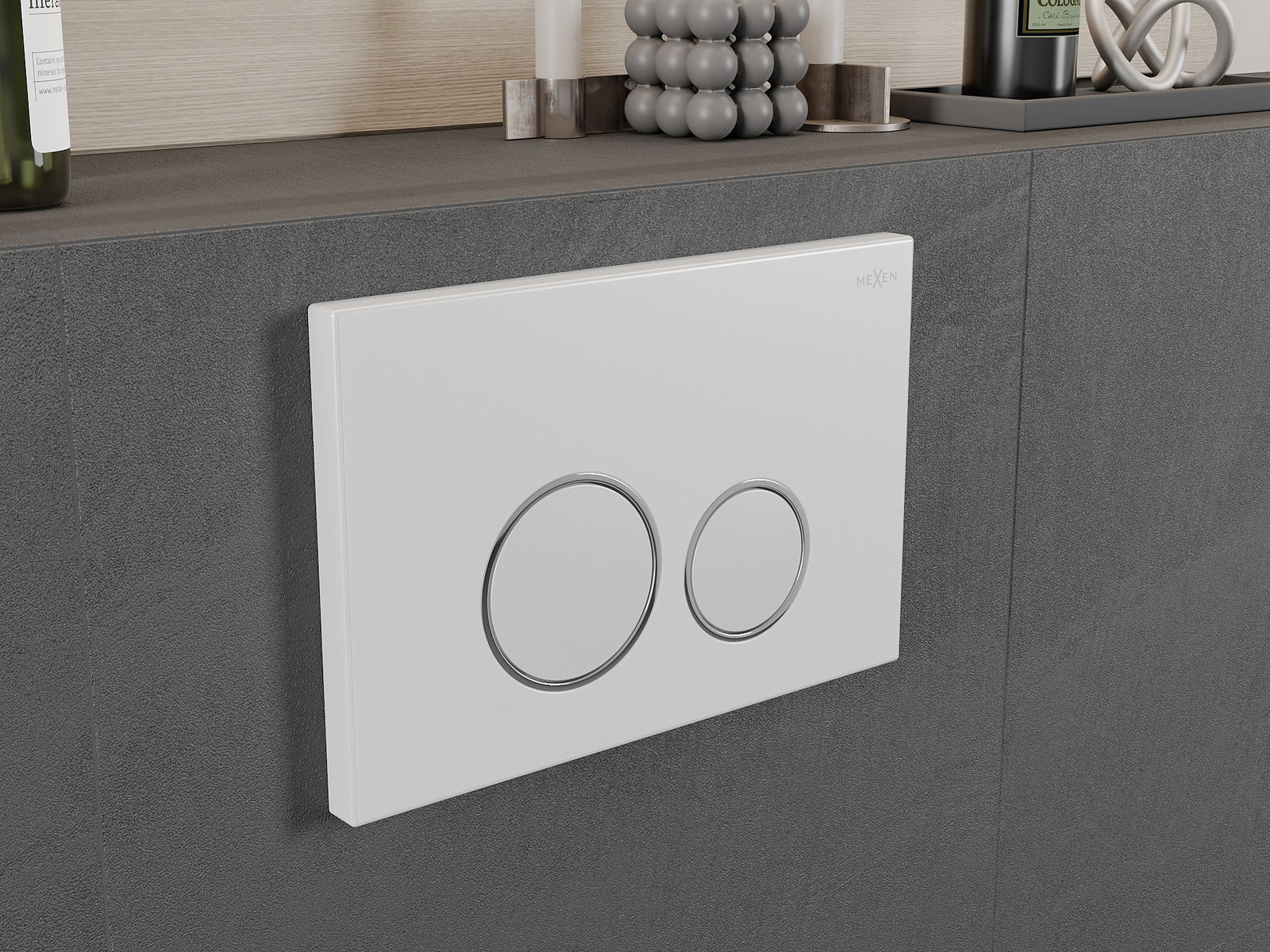 A gomb illeszkedik a Mexen Fenix Slim sorozat keretéhez, amelybe elölről lehet telepíteni. Egy népszerű és praktikus megoldás, különösen a fürdőszobákban, ahol az elülső gombhoz való hozzáférés kényelmesebb.