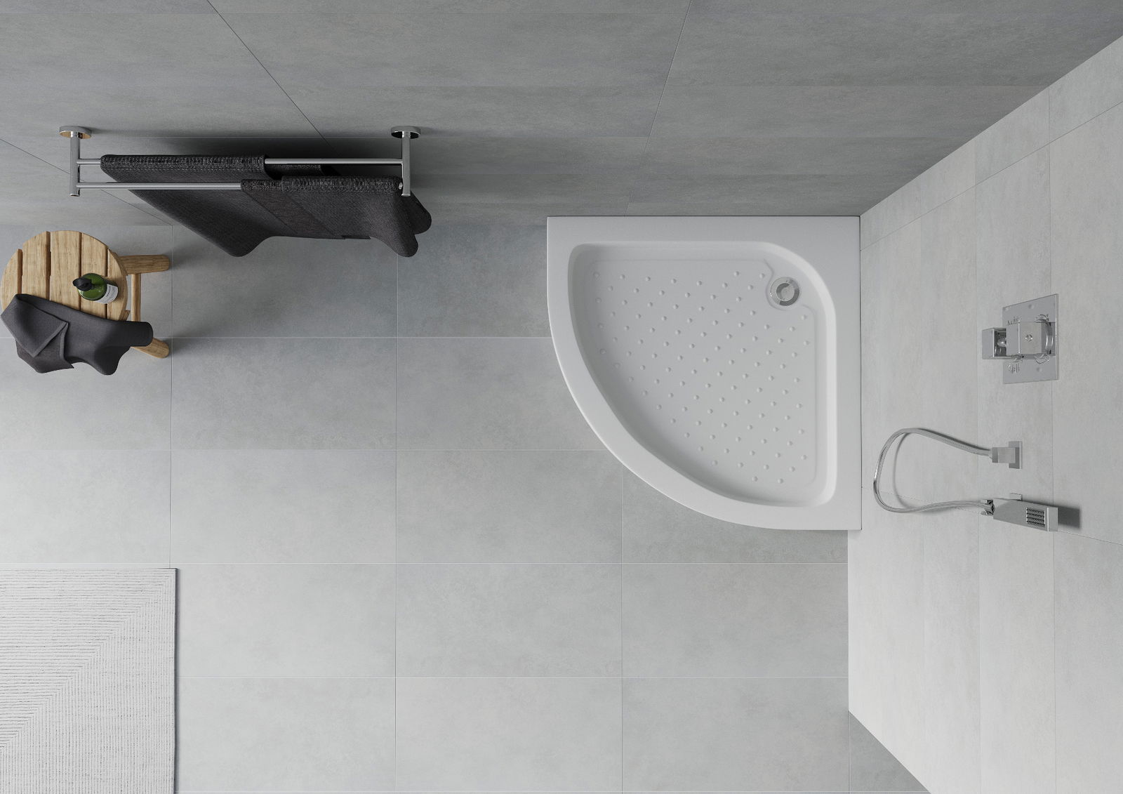 A Mexen Rio egy félkör alakú zuhanytálca, amelynek méretei 80 x 80 cm, magassága pedig 14 cm, szaniter akrilból készült. Elegáns, fehér színe és fényes felülete tökéletesen illeszkedik bármely fürdőszobába. A zuhanytálca megerősített szerkezettel rendelkezik, és egy könnyen felülről tisztítható szifonnal van ellátva. Az 50 mm-es lefolyó átmérője biztosítja a hatékony vízelvezetést. A Mexen Rio választása garantálja a funkcionalitást és a modern stílust a fürdőszobájában.