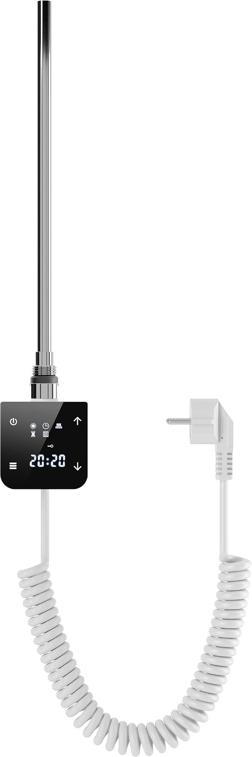 A Mexen FA-05W 450 W-os elektromos fűtőelem kiváló választás a fürdőszobád számára. A 450 W-os teljesítményével és 230V/50 Hz-es üzemi feszültségével hatékony fűtést biztosít. A 415 mm-es fűtőelem hossza és fehér színe tökéletesen illeszkedik a legtöbb belső térhez. A fűtőelem fejlett funkciókat kínál, mint például a hőmérséklet kiválasztása (30°C-70°C), szárítási lehetőség, heti munkarend, energiatakarékos mód 30°C-ig, fagyás elleni védelem 7°C alatt és gyerekzár a biztonság érdekében. A LED kijelző megkönnyíti a működés ellenőrzését, az IP44 védettségi szint pedig tartósságot biztosít.