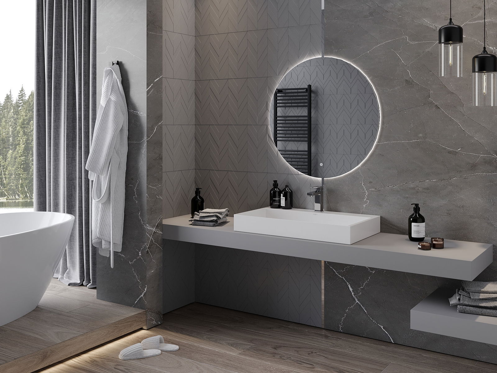 A tükörnél lévő LED megvilágítás praktikus elem, amely megkönnyíti a mindennapi ápolást az arcközép ideális megvilágításának lehetőségével. A megvilágítás modern befejezést kölcsönöz a fürdőszobának, kiemelve elegáns dekorációját.