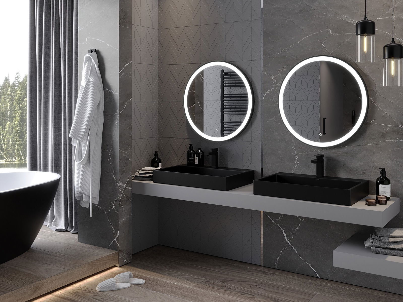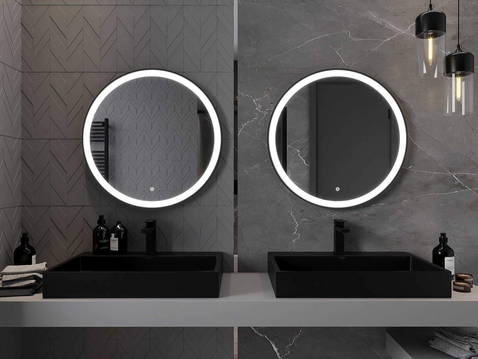 Mexen Esso megvilágított, kerek fürdőszobai tükör, 70 cm, LED 6000K, páramentes, fekete keret - 9825-070-070-611-70