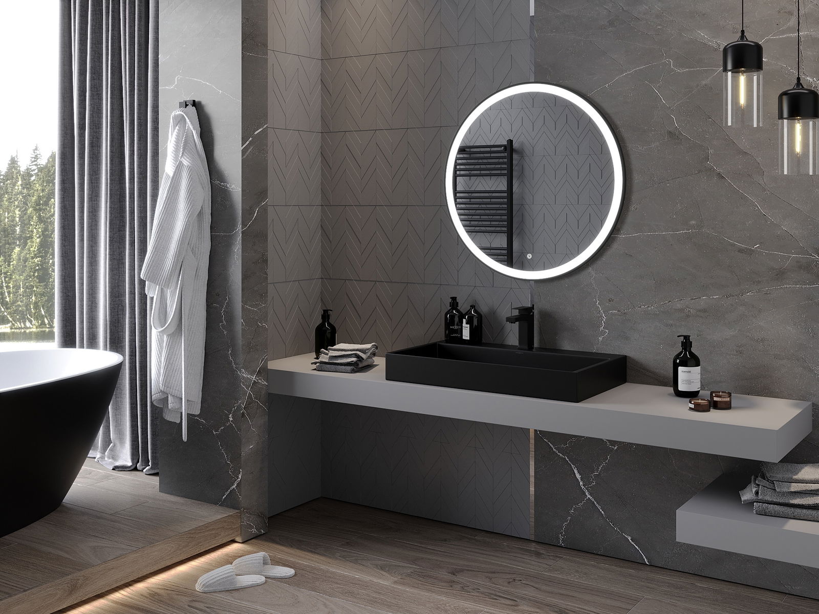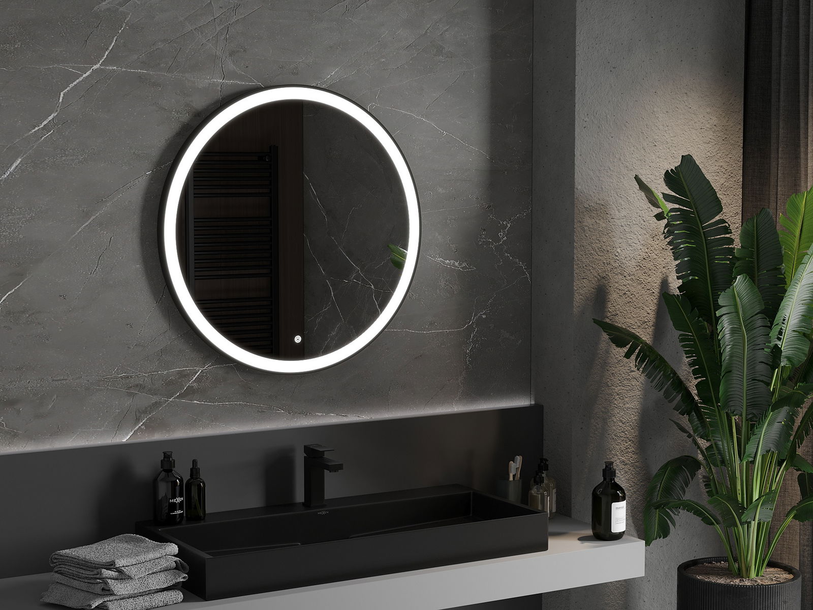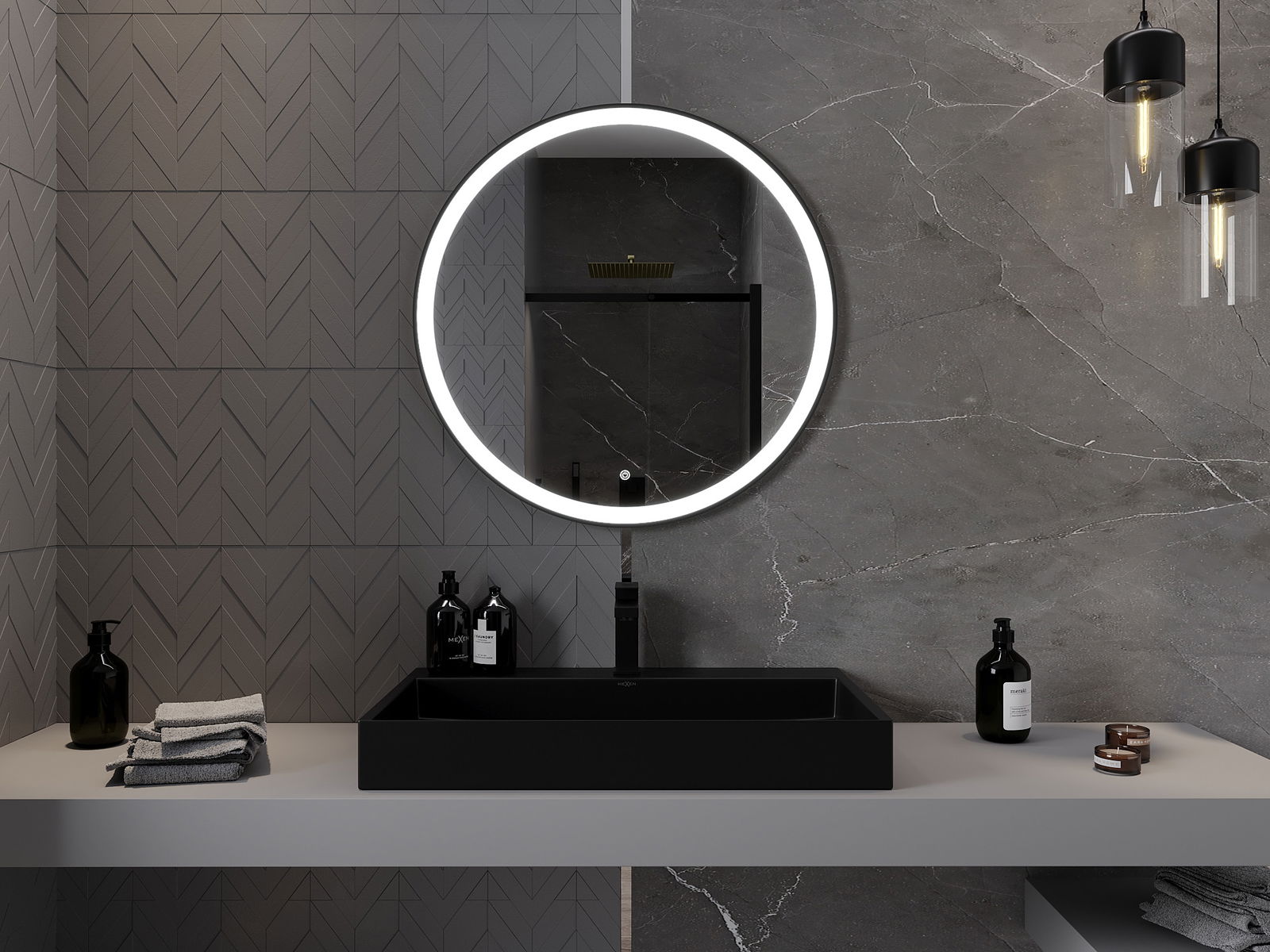 Mexen Esso fürdőszobai tükör, kerek, megvilágított, 80 cm, LED 6000K, páramentes, fekete keret - 9825-080-080-611-70