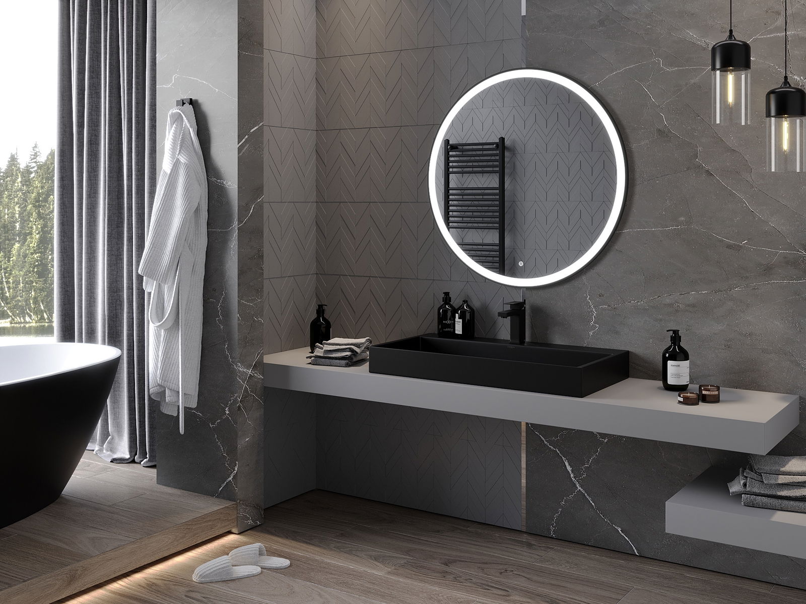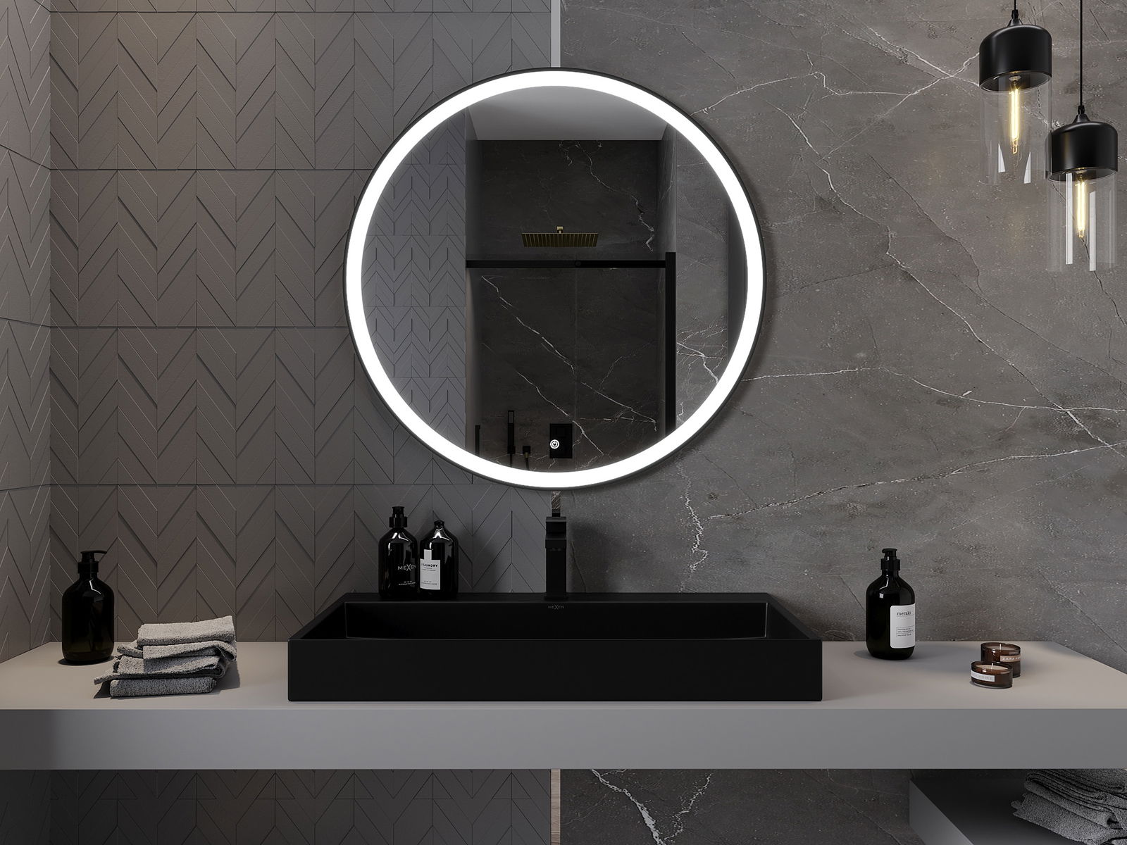 Mexen Esso megvilágított, kerek fürdőszobai tükör, 90 cm, LED 6000K, páramentes, fekete keret - 9825-090-090-611-70