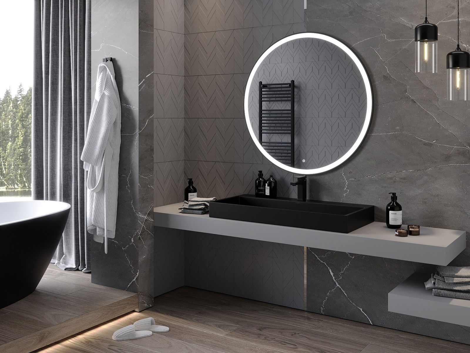 A tükörvilágítás egyszerűen és kényelmes módon indítható a tükör felületén lévő kapcsoló megérintésével. Ez lehetővé teszi a gyors megvilágítást, anélkül, hogy el kellene érnie a további hagyományos világítási kapcsolót.