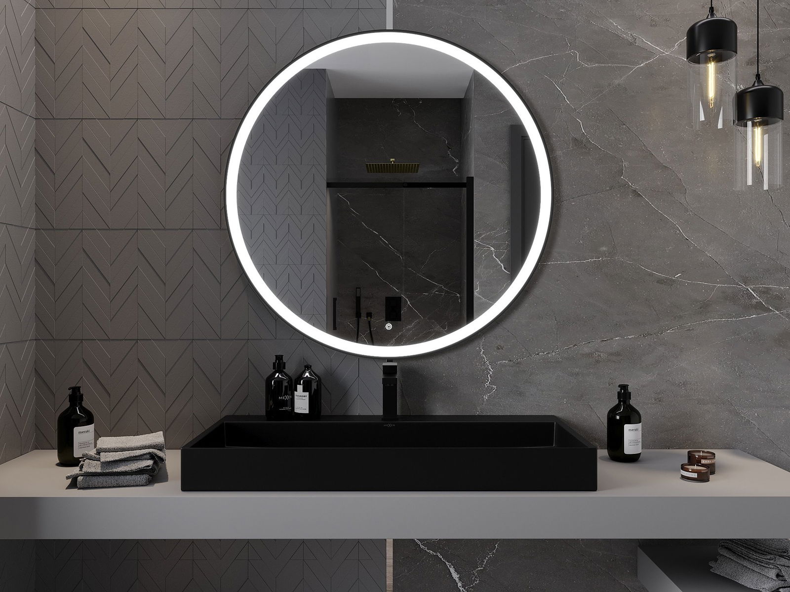 Mexen Esso fürdőszobai megvilágított tükör, kerek, 100 cm, LED 6000K, páramentesítő, fekete keret - 9825-100-100-611-70