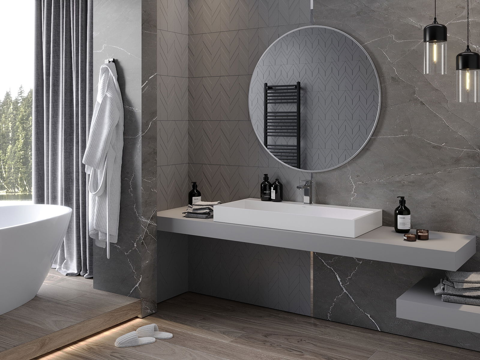 A tükör kiváló minőségű alapanyagokból készült, amelyek ellenállnak a külső hatásoknak, mint például a nedvesség és a vízgőz, így kiváló választás olyan helyiségekbe, mint a fürdőszoba. A magas minőségű anyagok használata miatt a tükör tartós és karcálló.