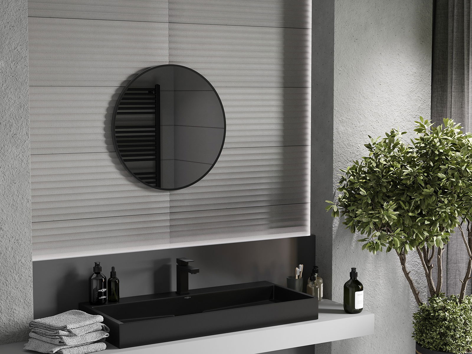 Mexen Loft kerek fürdőszobai tükör 65 cm, fekete keret - 9850-065-065-000-70