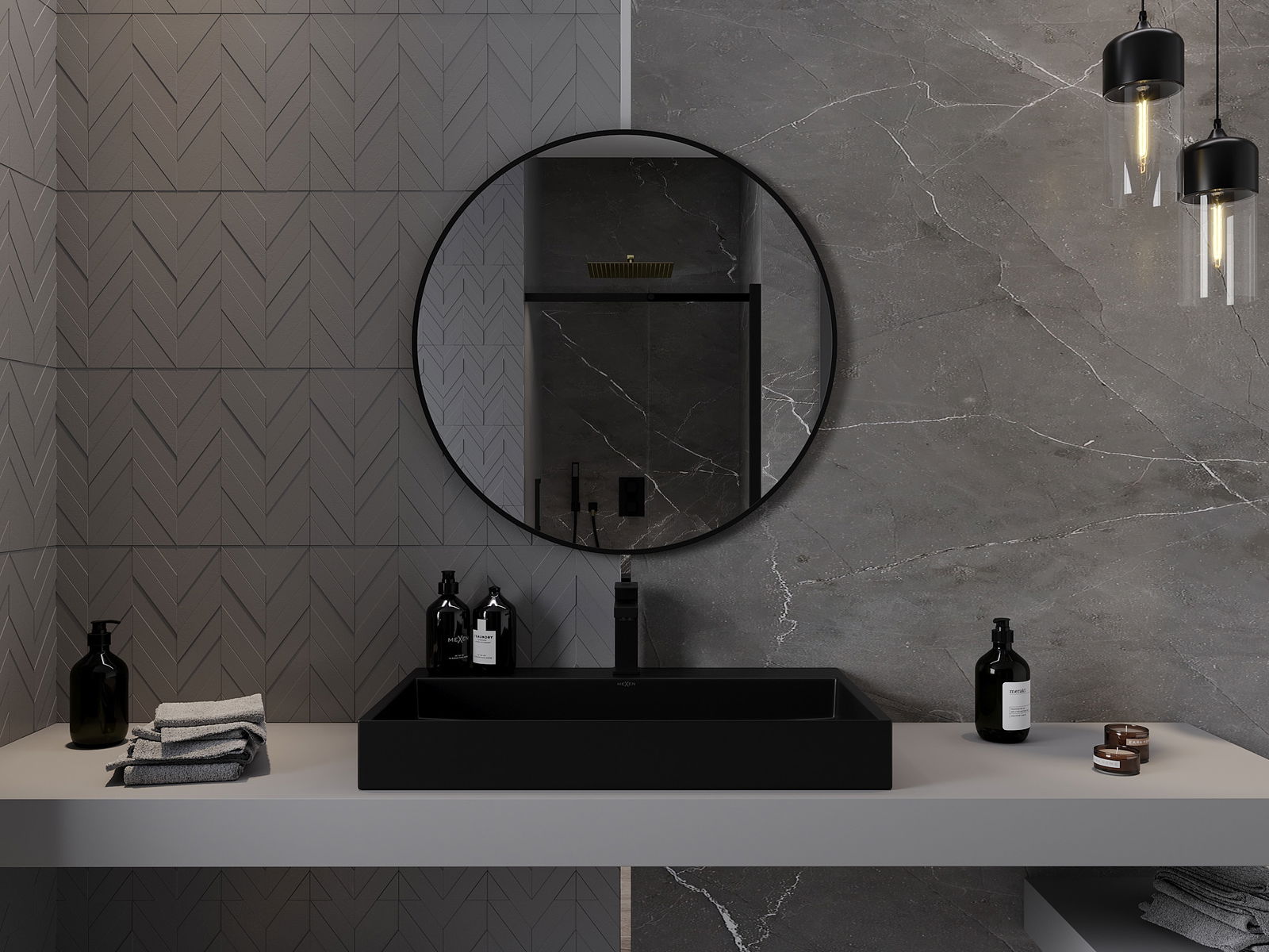 Mexen Loft kör alakú fürdőszobai tükör 80 cm, fekete keret - 9850-080-080-000-70