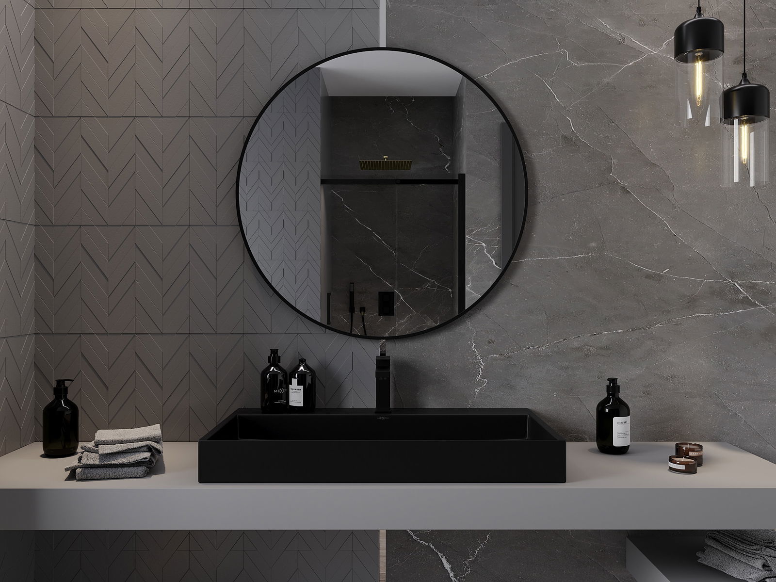 Mexen Loft kerek fürdőszobai tükör 90 cm, fekete keret - 9850-090-090-000-70