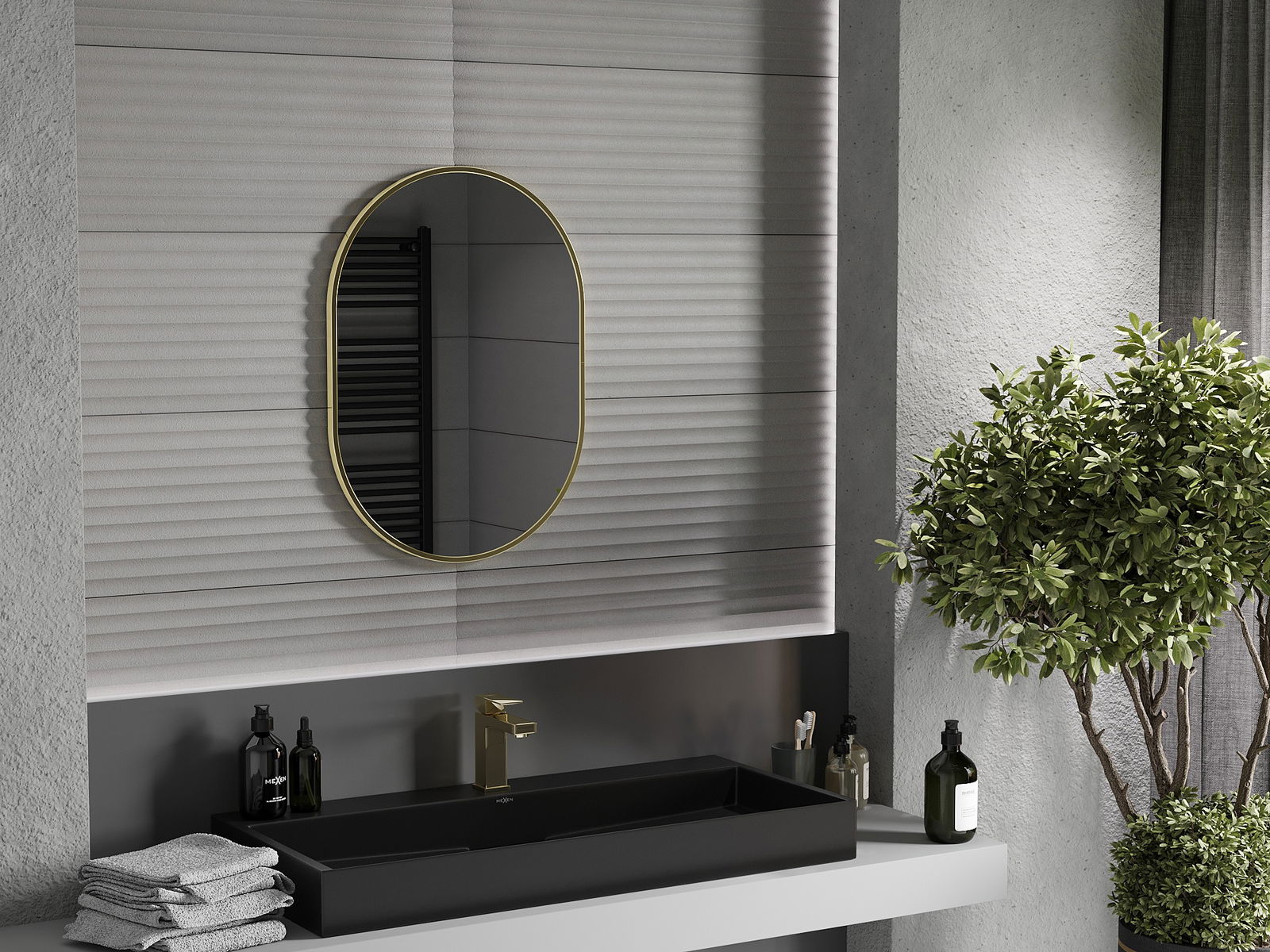 Mexen Loft ovális fürdőszobai tükör 70 x 50 cm, arany keret - 9851-070-050-000-50