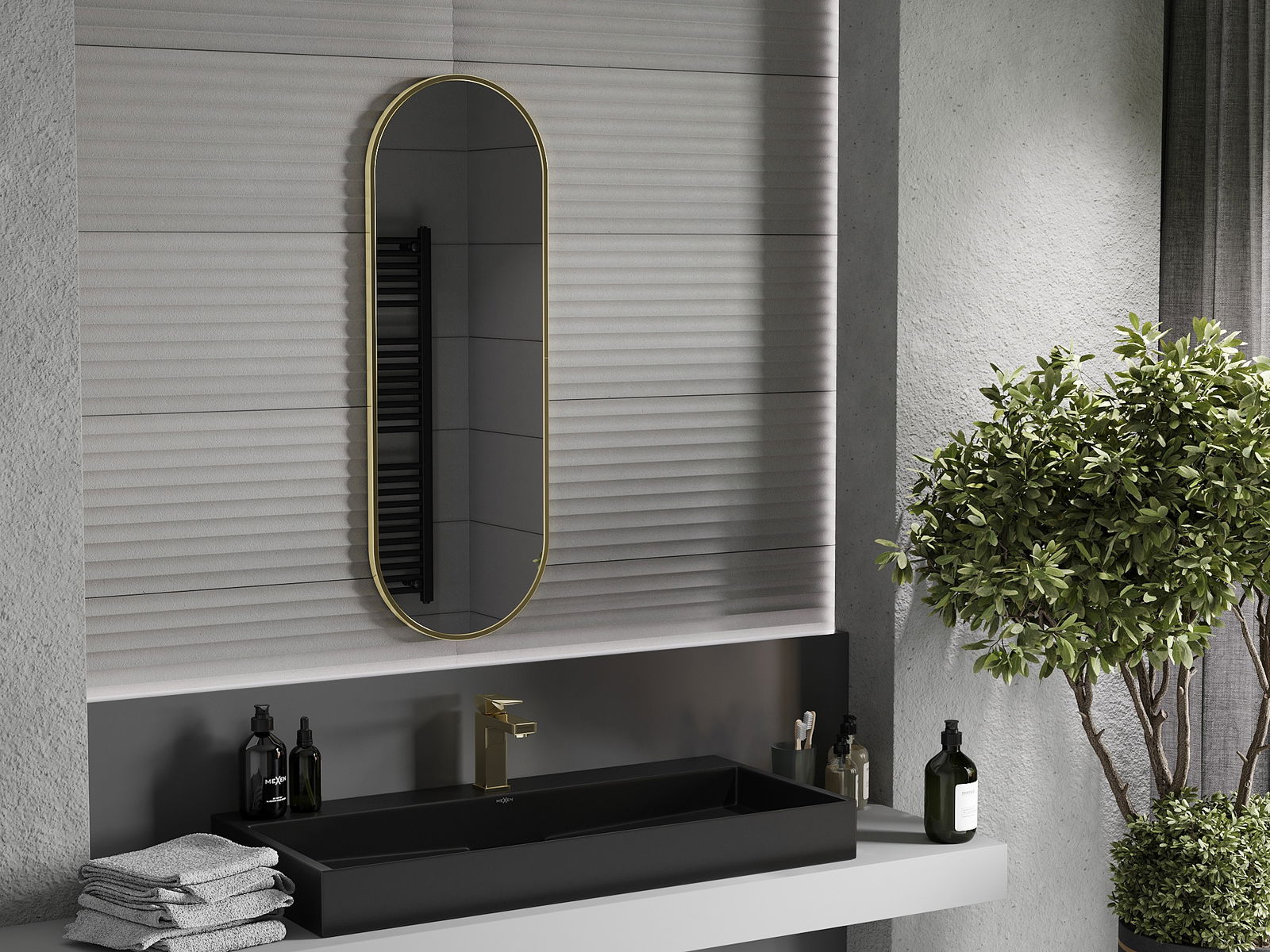 Mexen Loft ovális fürdőszobai tükör 100 x 35 cm, arany kerettel - 9851-100-035-000-50