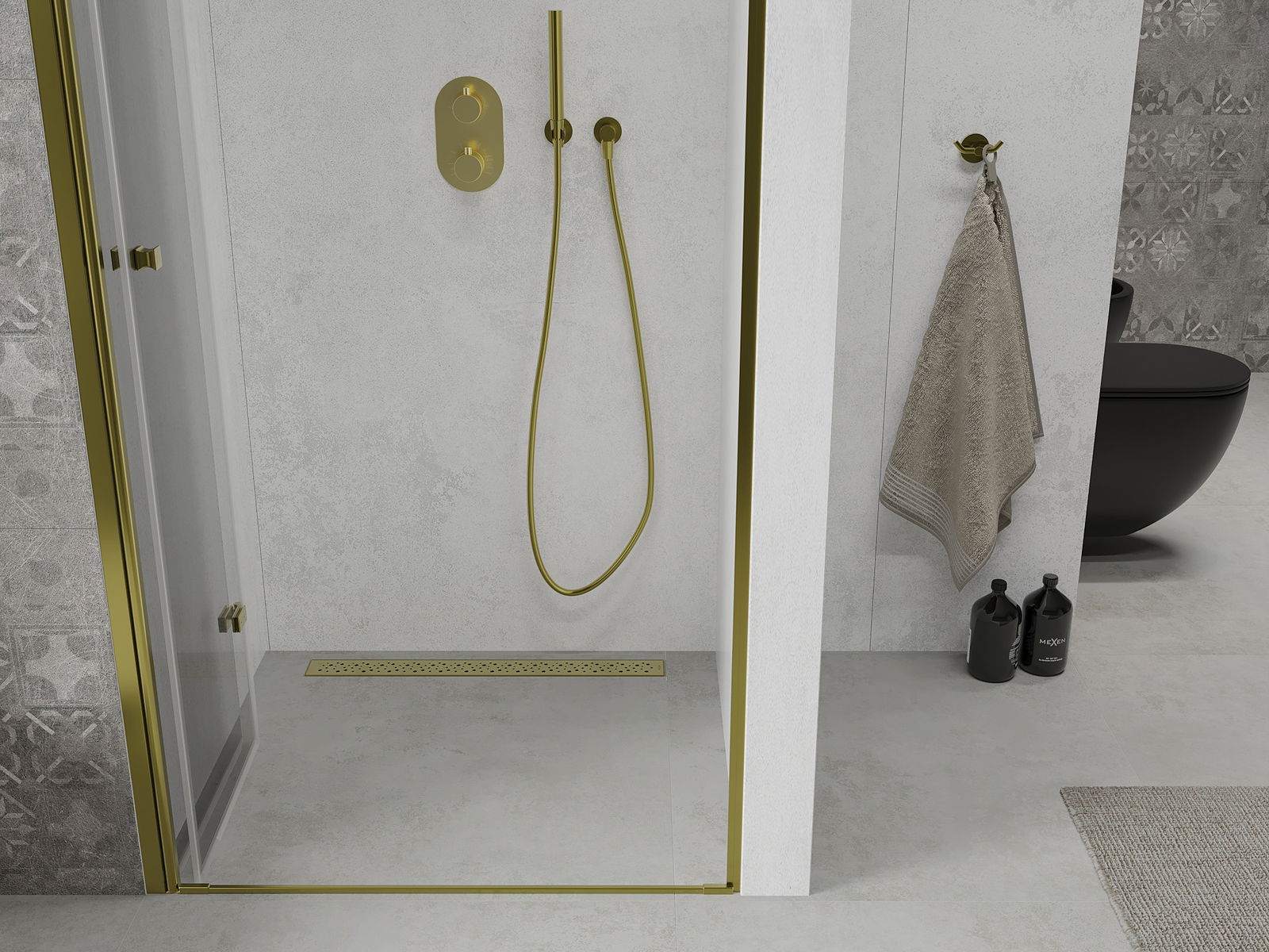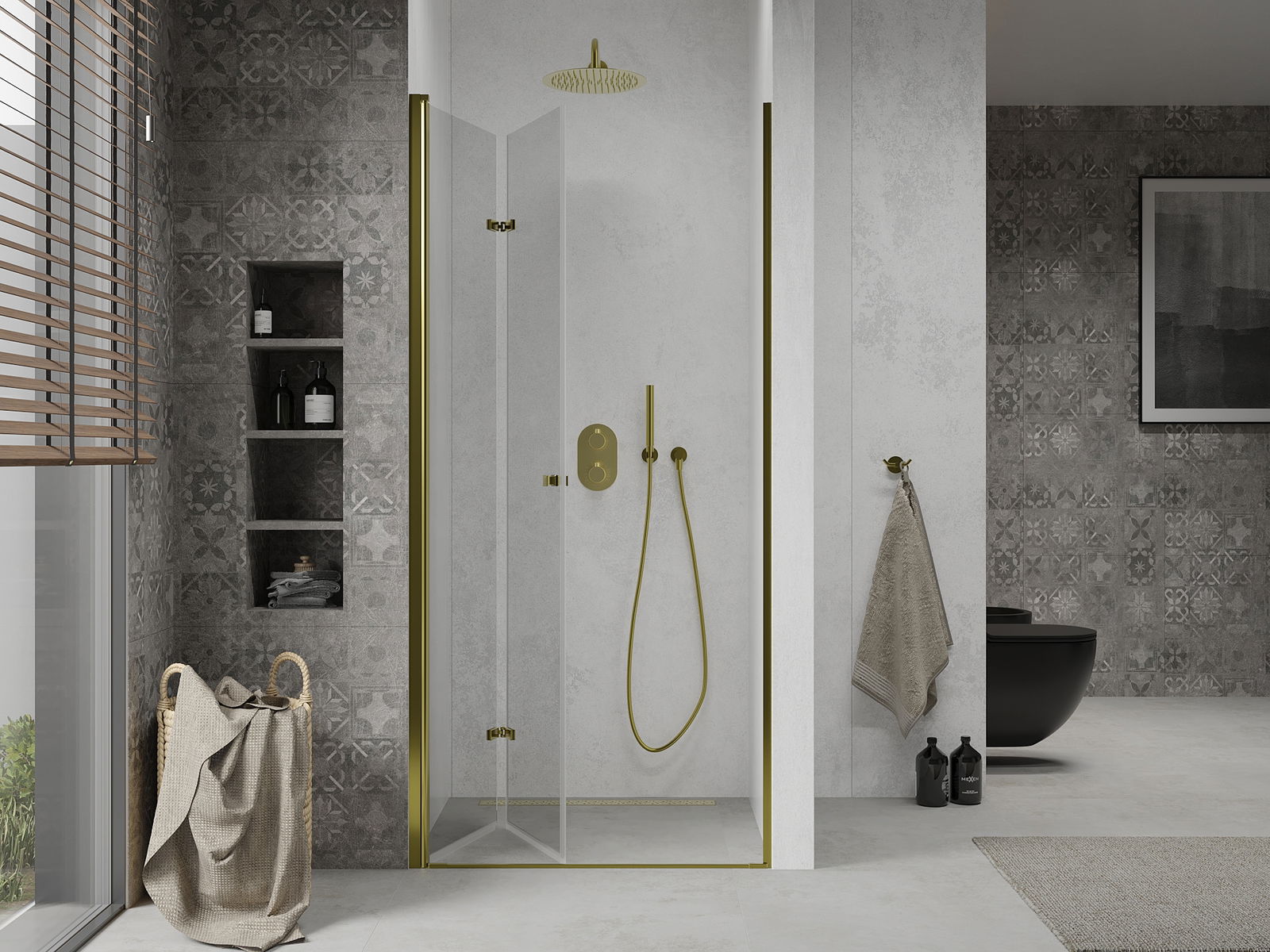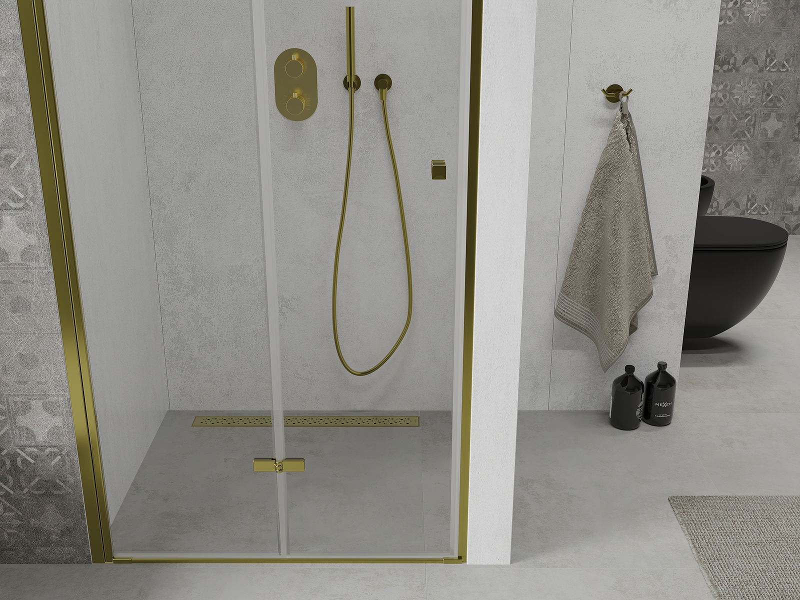 Mexen Lima 90 cm-es, összecsukható zuhanyajtó, áttetsző, arany - 856-090-000-50-00