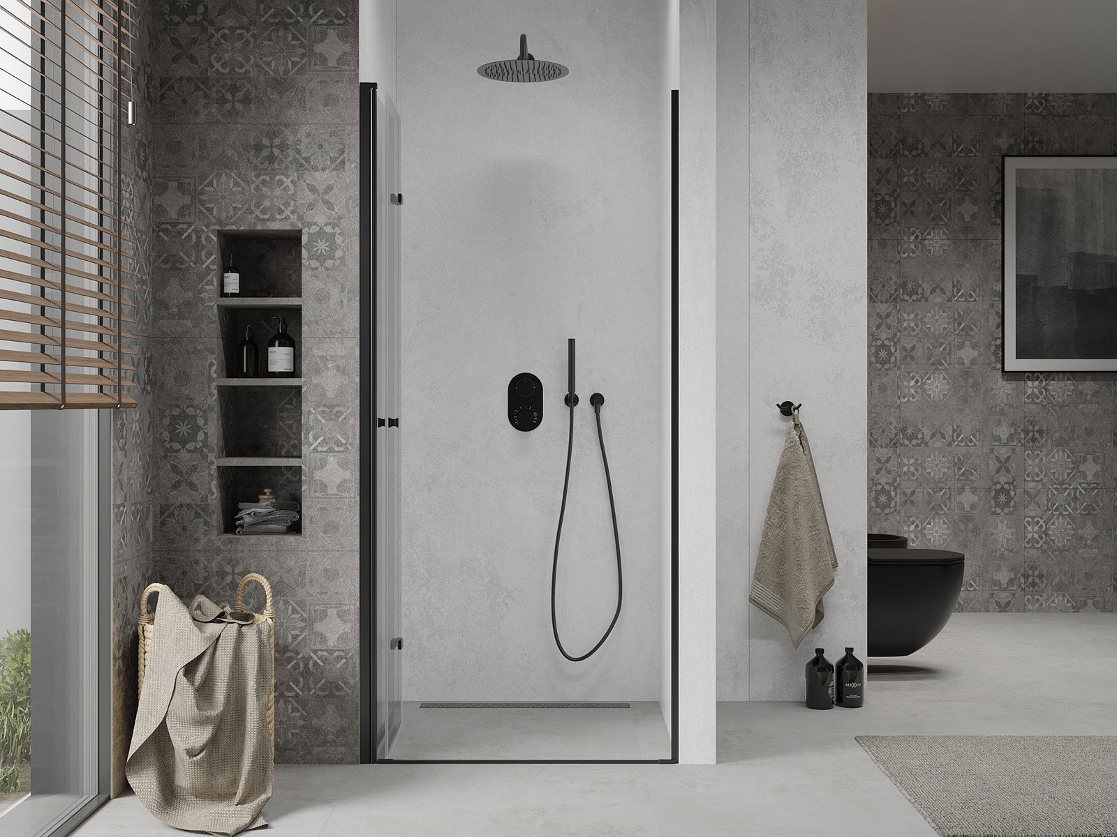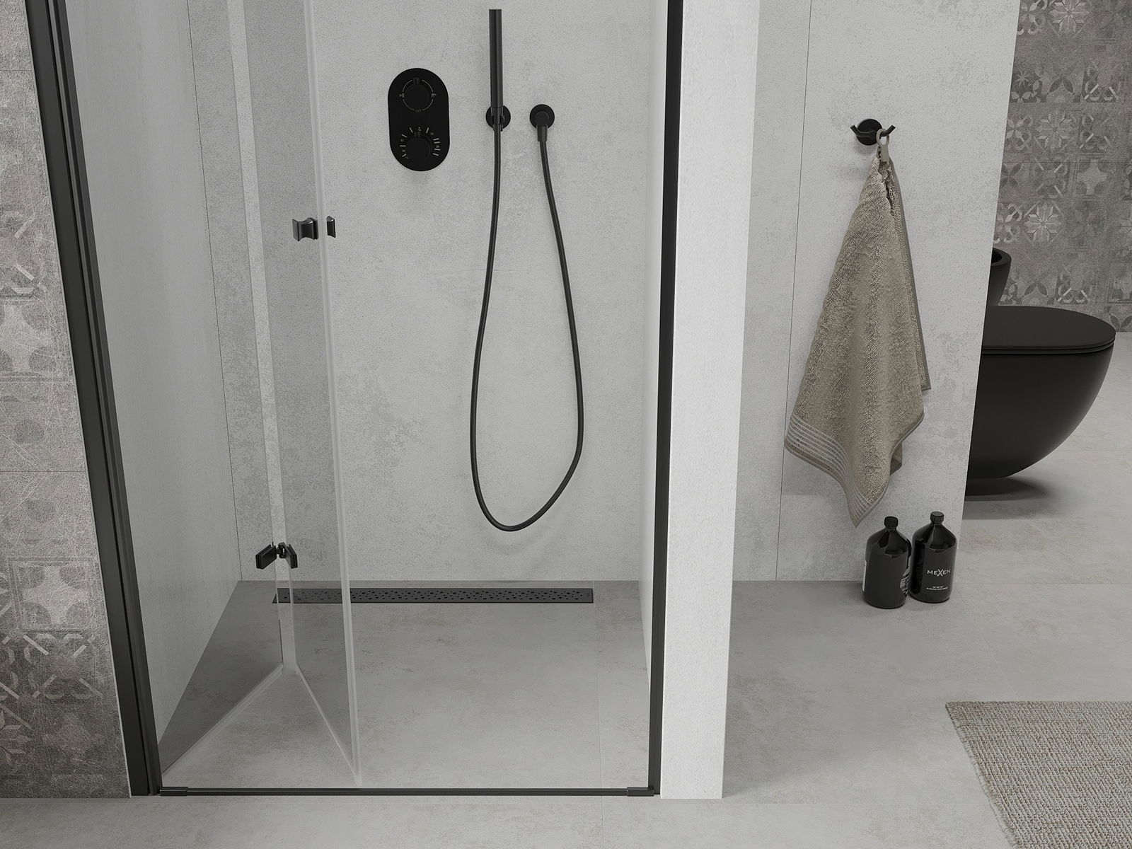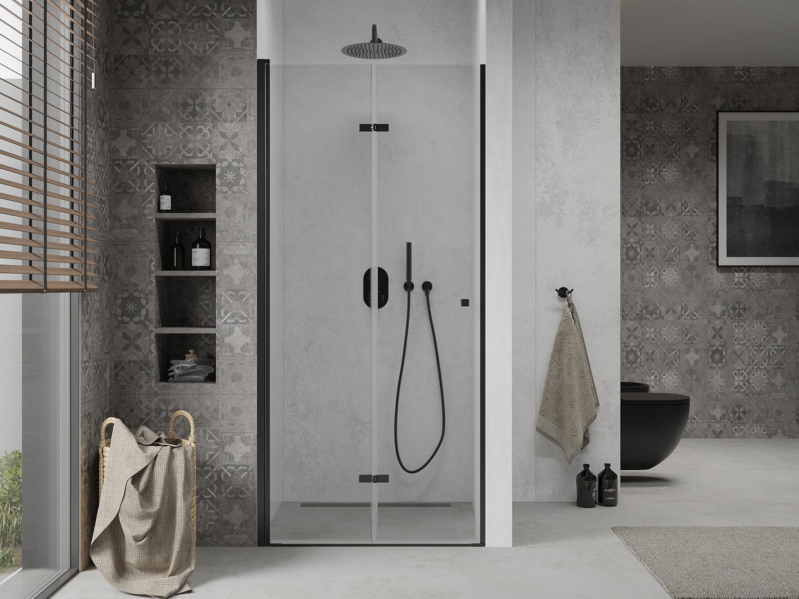 Mexen Lima 90 cm-es összecsukható zuhanyajtó, átlátszó, fekete - 856-090-000-70-00