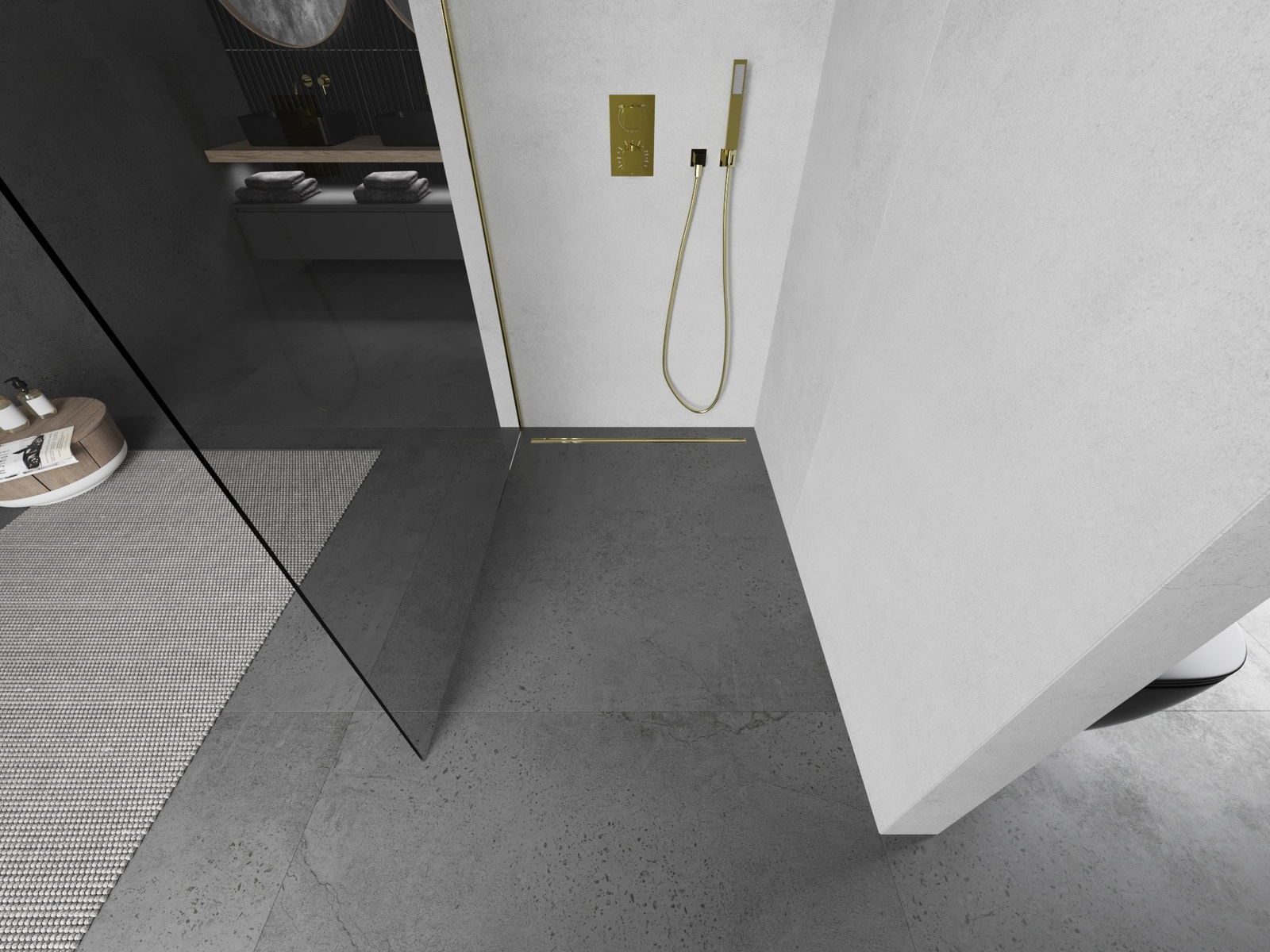 Mexen Kioto zuhanyfal Walk-in 160 x 200 cm, átlátszó 8 mm, arany - 800-160-101-50-00