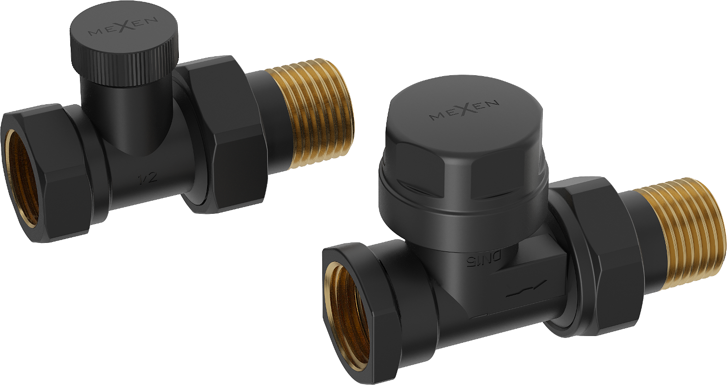 A készlet tartalmazza a tápláló és elzáró radiátorszelepet