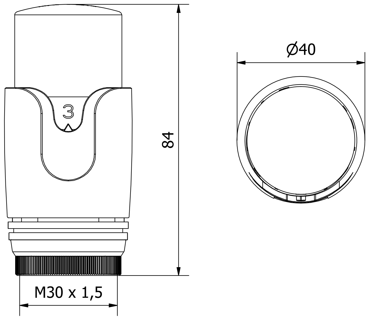 Ez egy szabványos menetterület, amelyet sok termosztatikus fejben használnak, különösen fűtési berendezésekben. Az M30 szimbólum jelentése a menet külső átmérője 30 mm, az 1,5 mm pedig a menetemelkedés 1,5 mm.