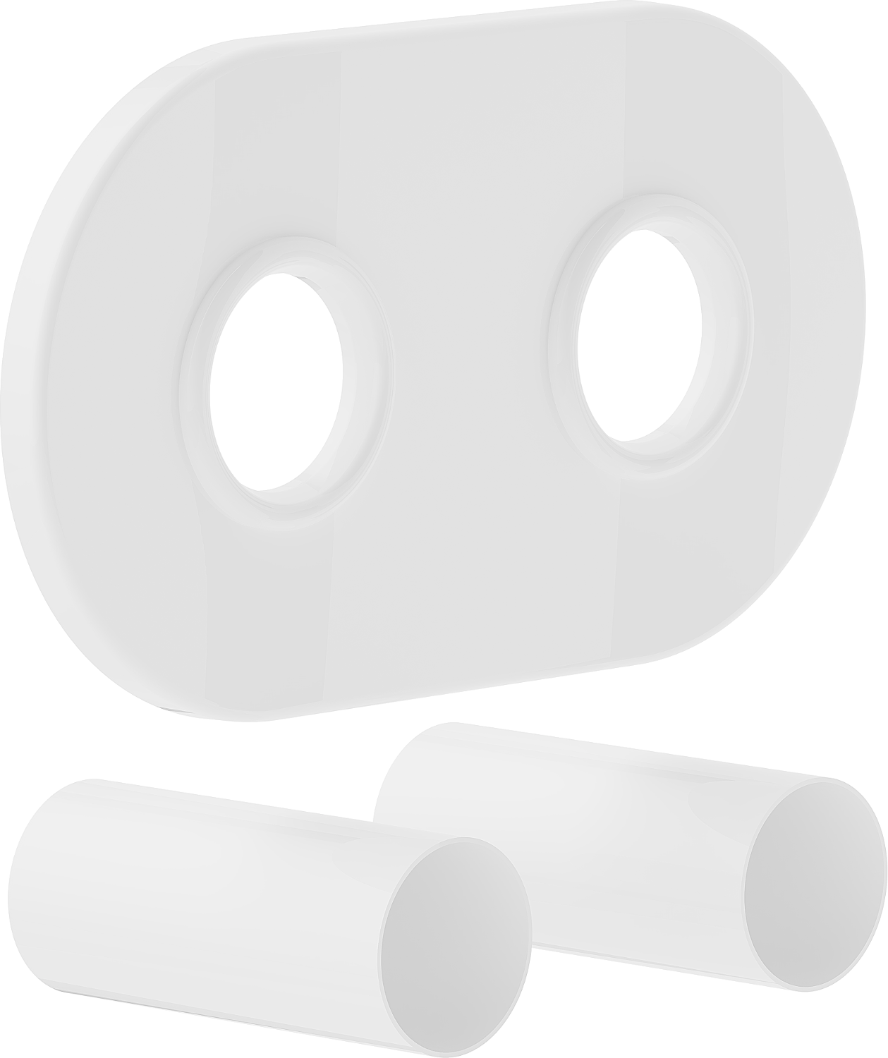 A takarókészlet egy kétszeres rozetát és két hüvelyt tartalmaz, amelyek a termosztát készletek és radiátorszelepek felszerelésére szolgálnak
