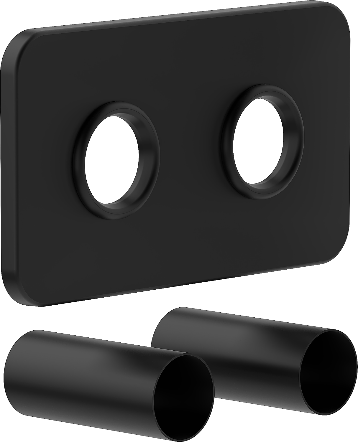 A takarókészlet kettős rozetta és két hüvelyt tartalmaz, amelyek a termosztatikus készletek és radiátorszelepek beszerelésére szolgálnak