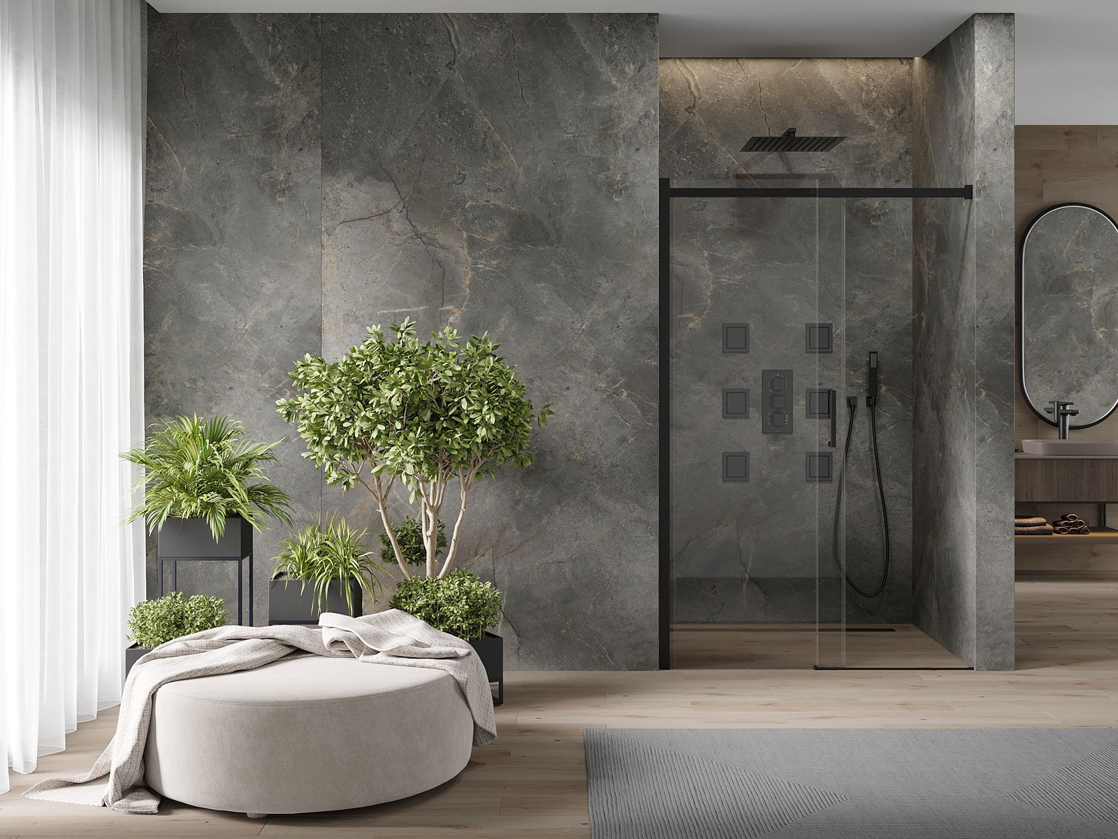 Az Ön igényeitől függően a terméket mind a zuhany tálcára, mind a padlóra lehet felszerelni. Az univerzális rögzítési módszer lehetővé teszi a termék hozzáigazítását a különféle fürdőszobákhoz és a hely konfigurálását.