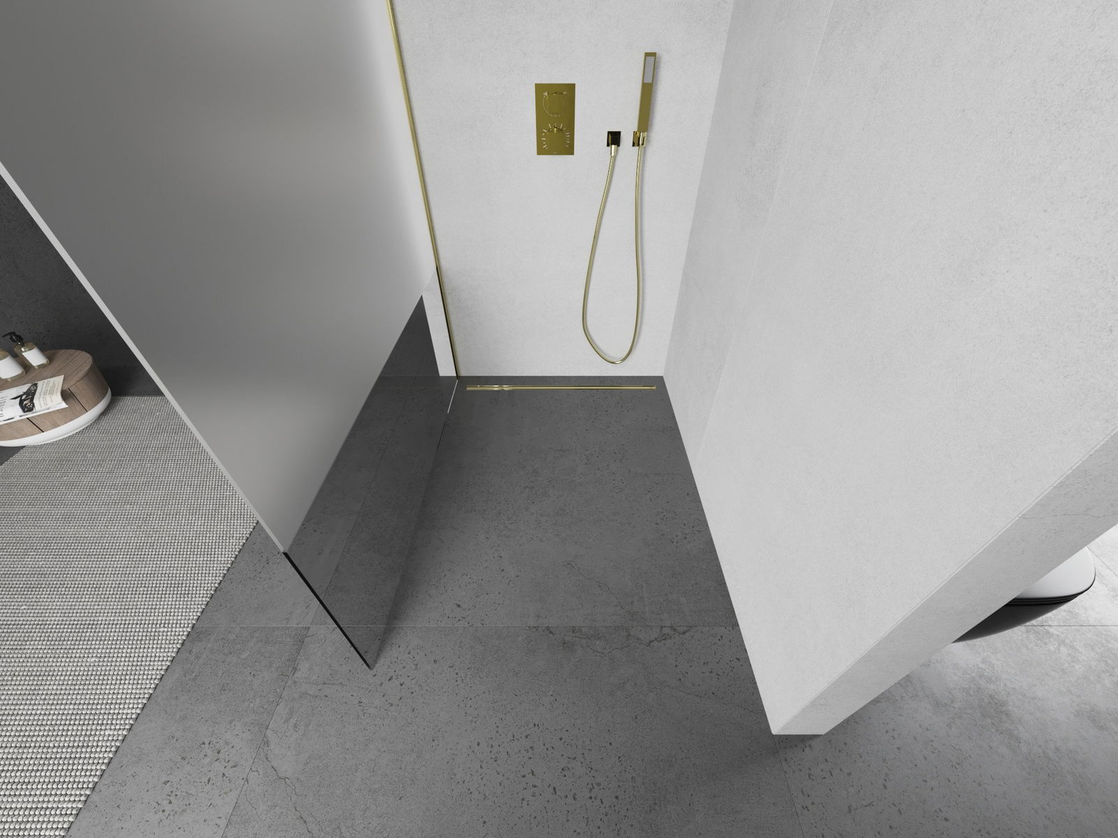 Mexen Kioto zuhanyfal Walk-in 90 x 200 cm, átlátszó/fagyott 8 mm, arany - 800-090-101-50-35