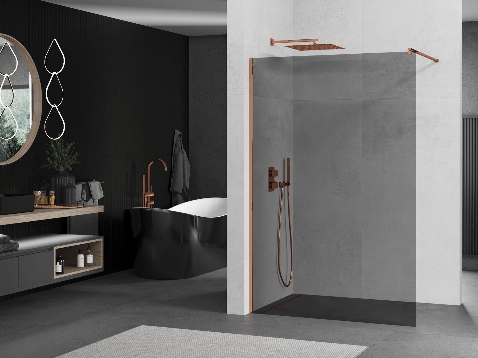 Mexen Kioto Walk-in zuhanyfal 70 x 200 cm, grafit 8 mm, rózsaarany - 800-070-101-60-40