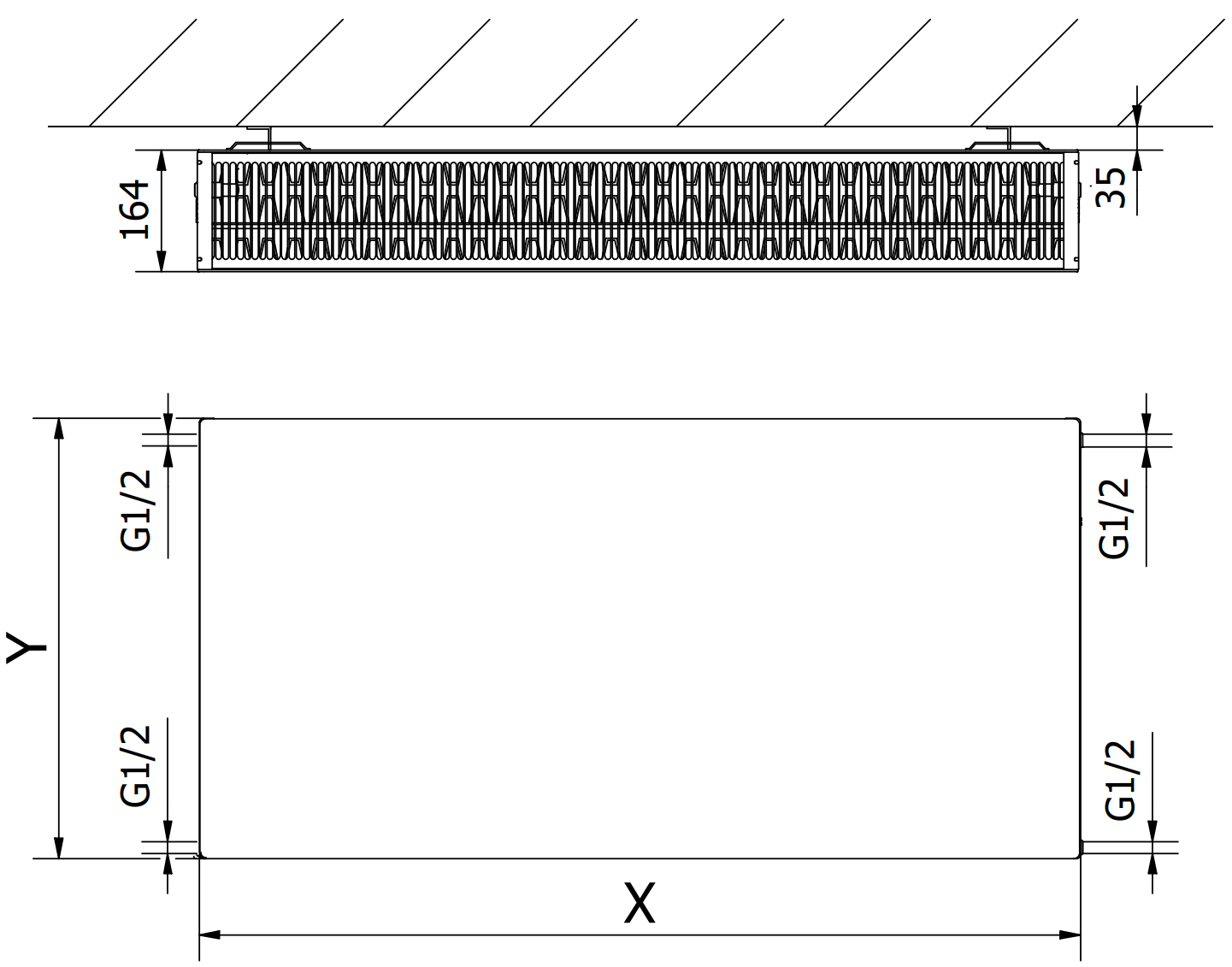 A képek a 600 x 1200 mm méretű radiátort mutatják.